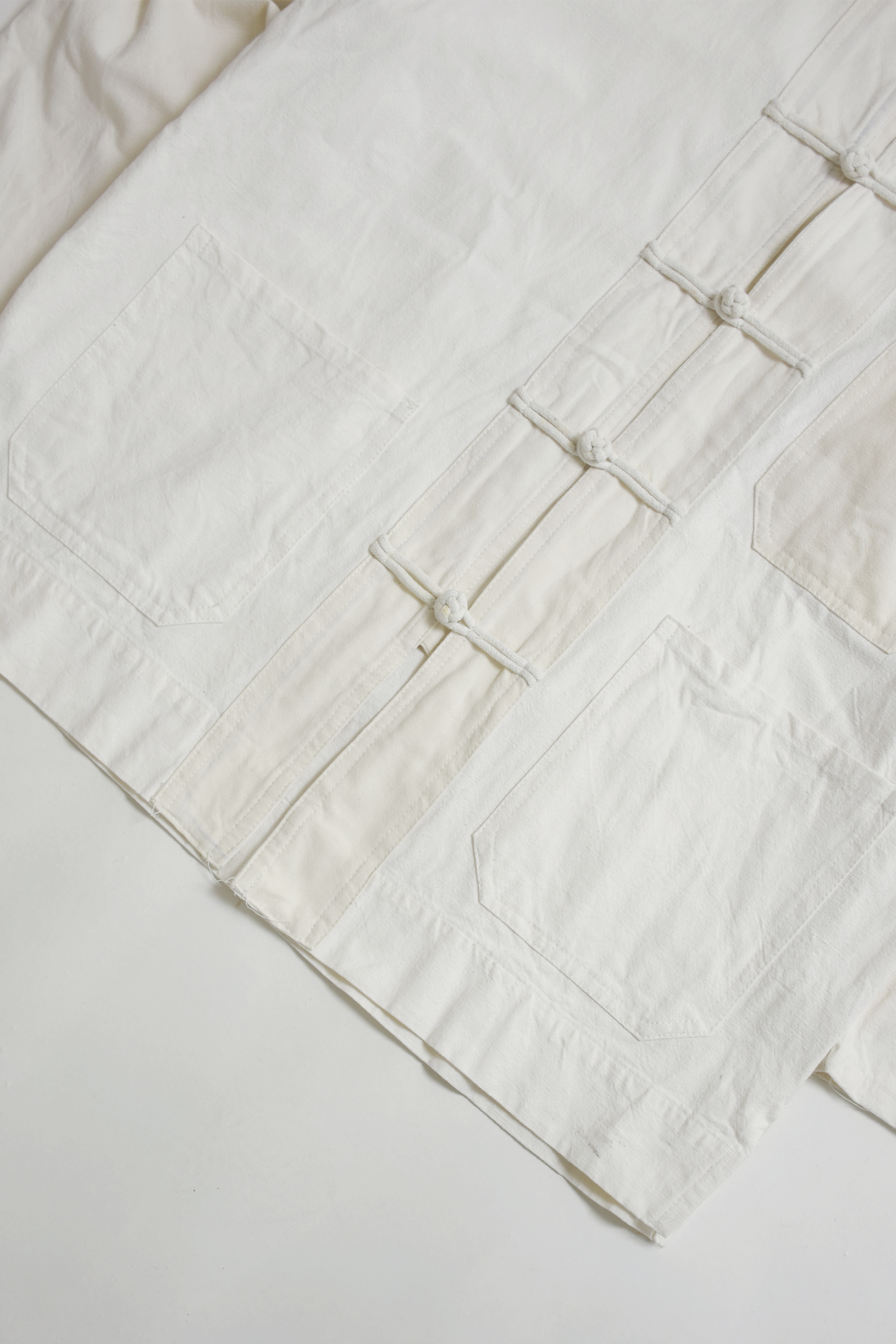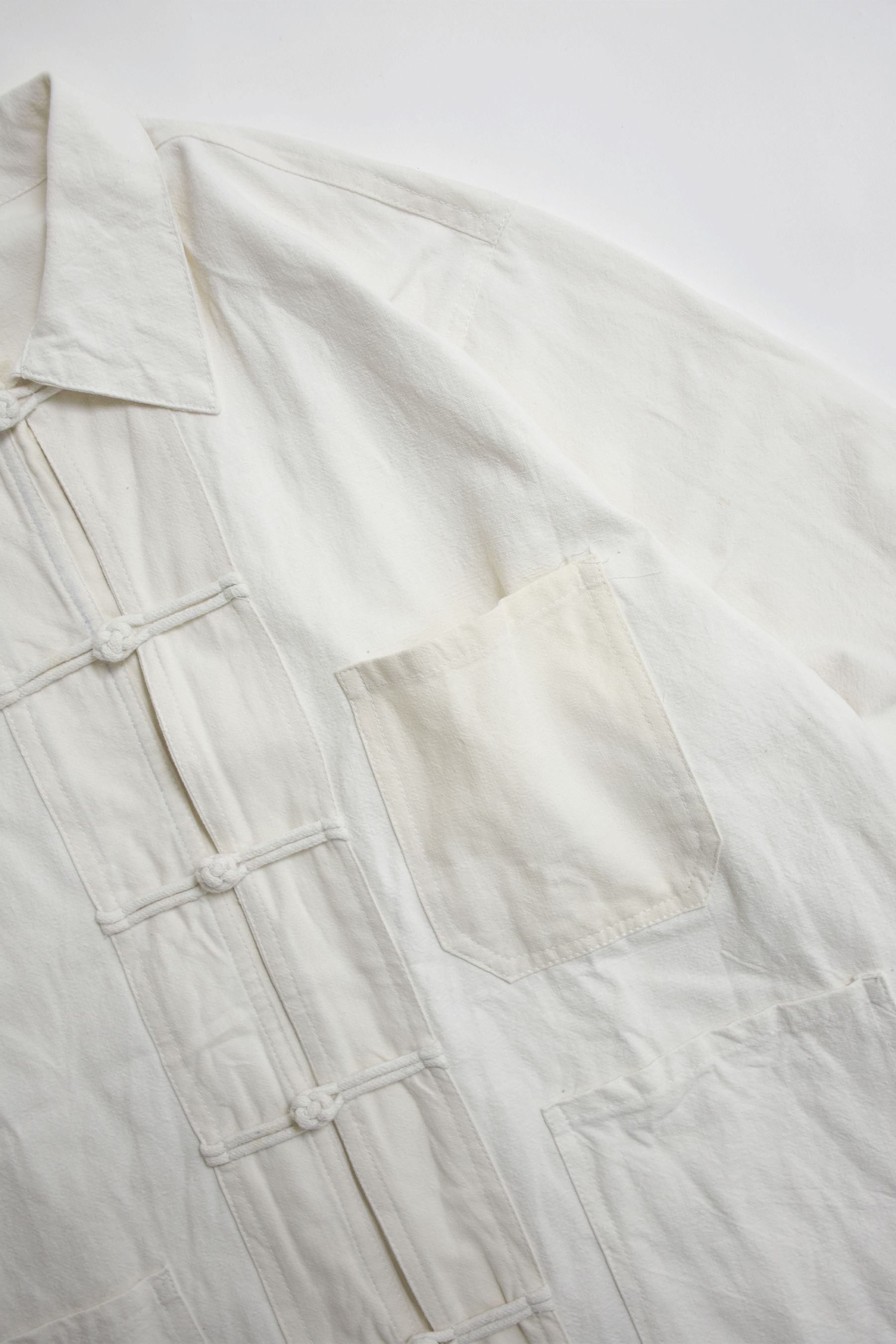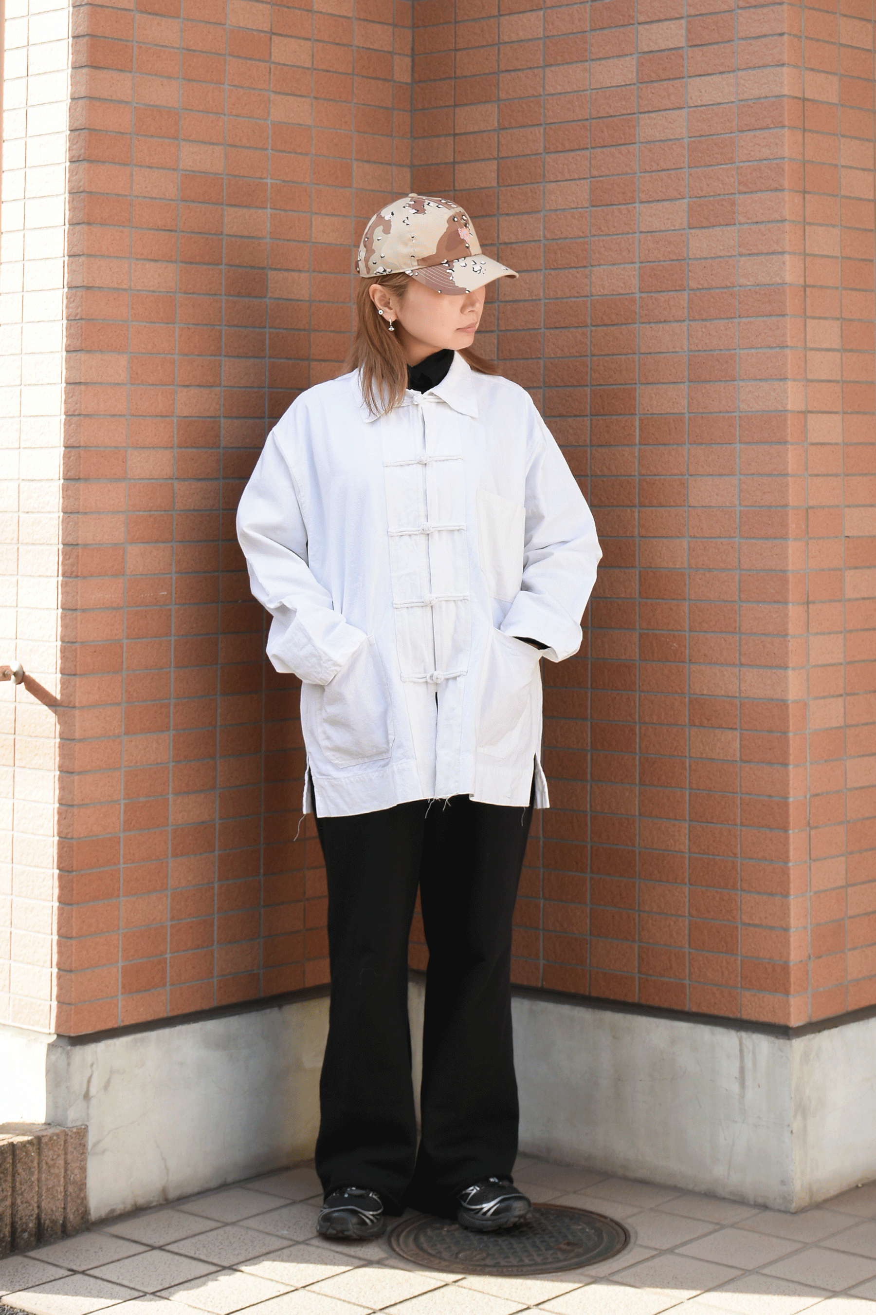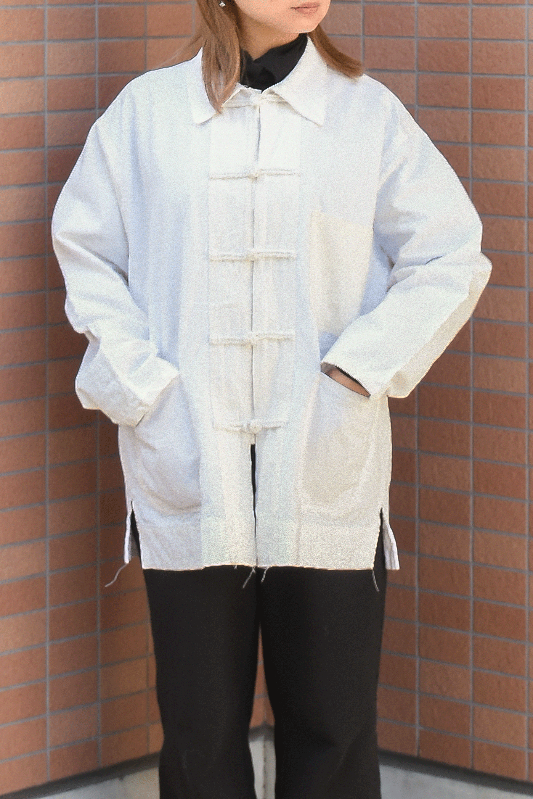 肉厚で上質なリネン生地がアンティークらしいとても珍しい一枚。市場で年々希少価値が上がっているフレンチアイテムの中でも、スペシャルな チャイナカラーデザイン。
