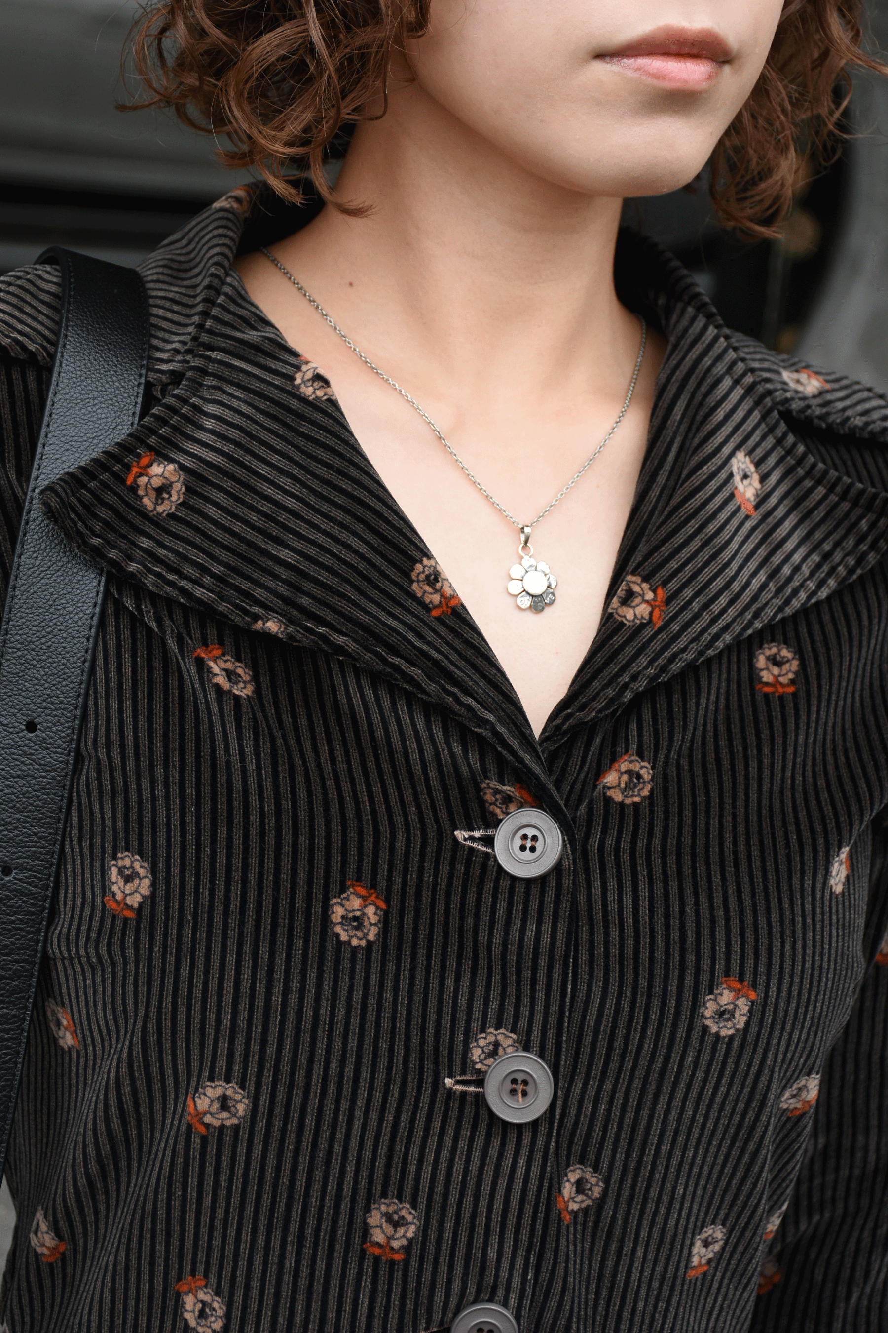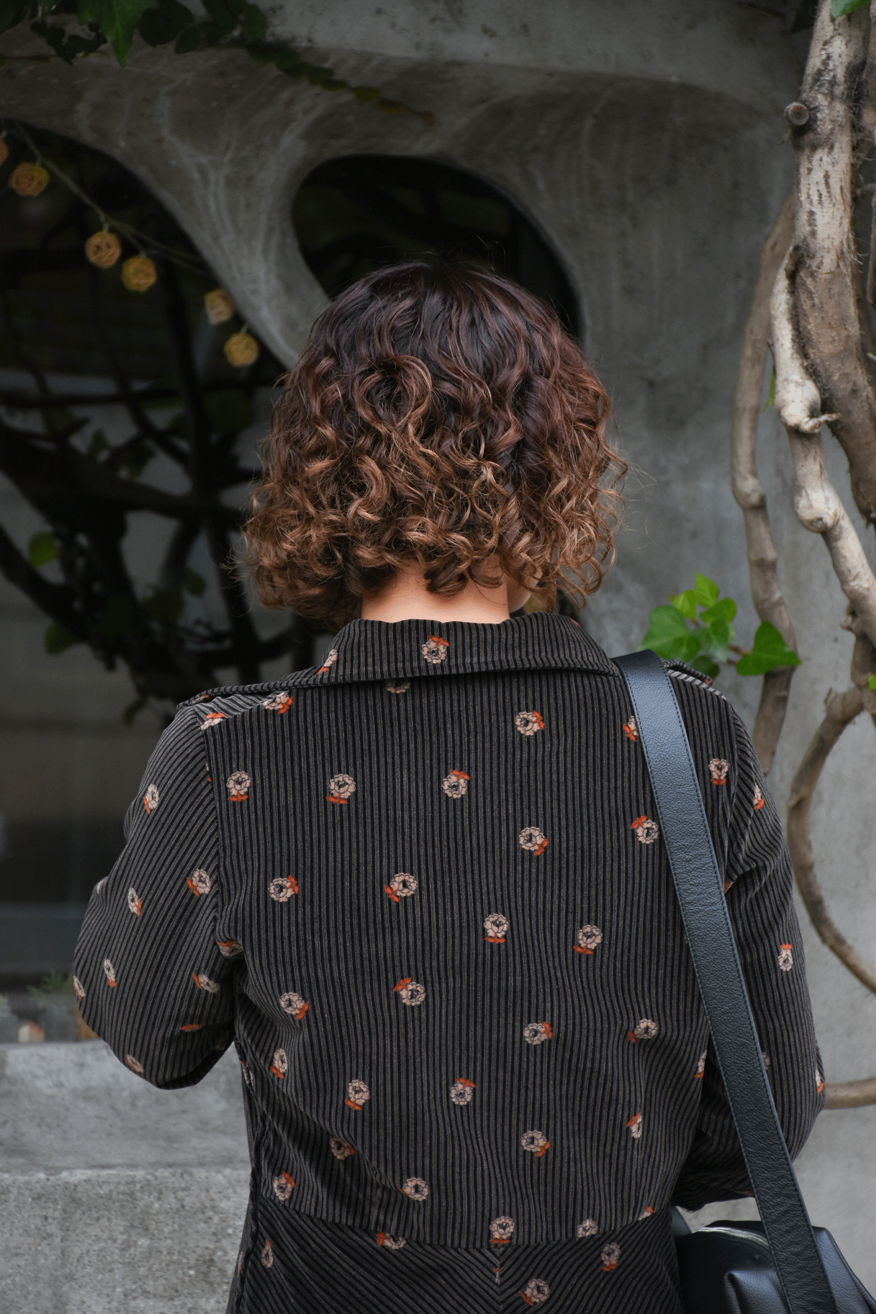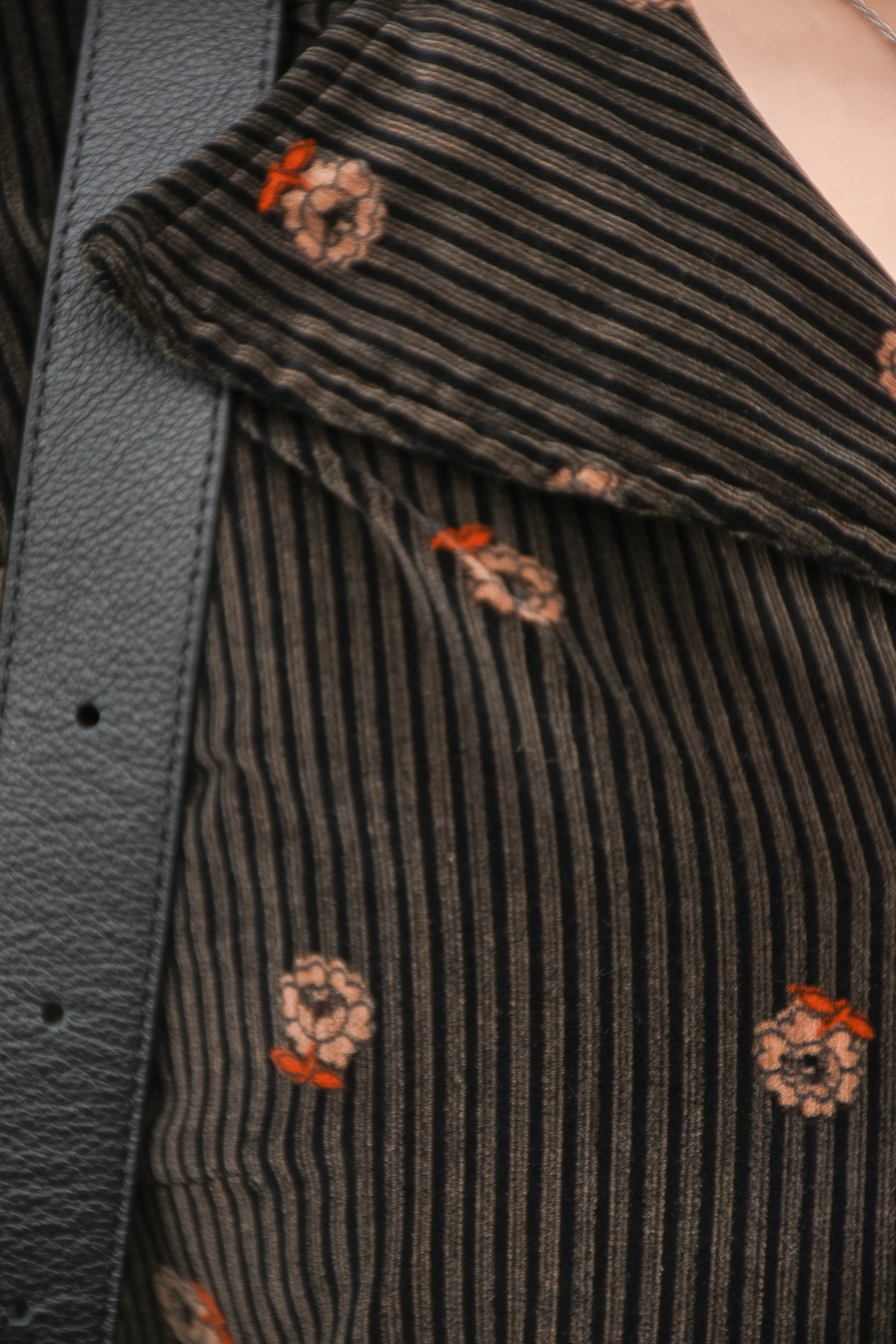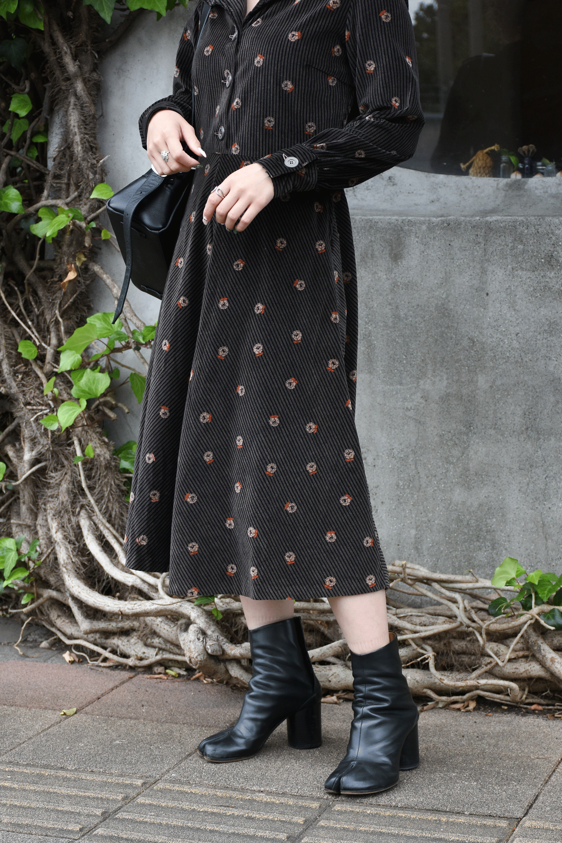 70sフランスのベルベット素材のシックな花柄ワンピース。ノスタルジーな柄、素材、デザイン全て揃っています。今では珍しいECLAIR/エクレア社製ジップ使用。