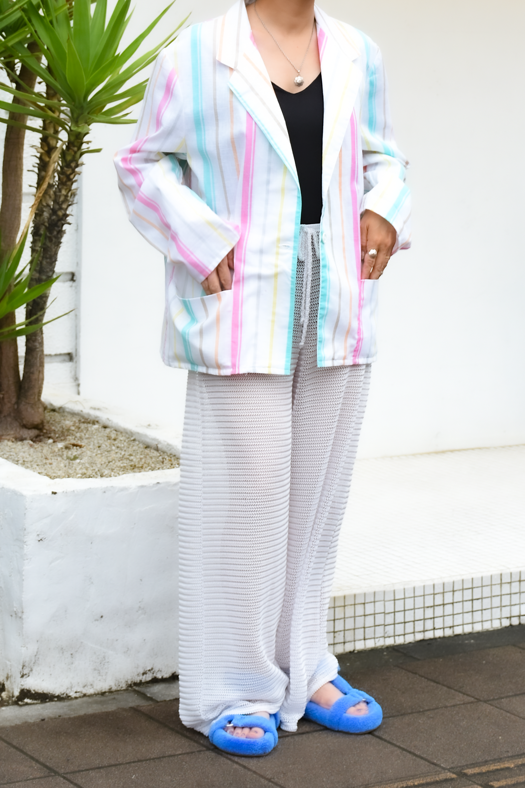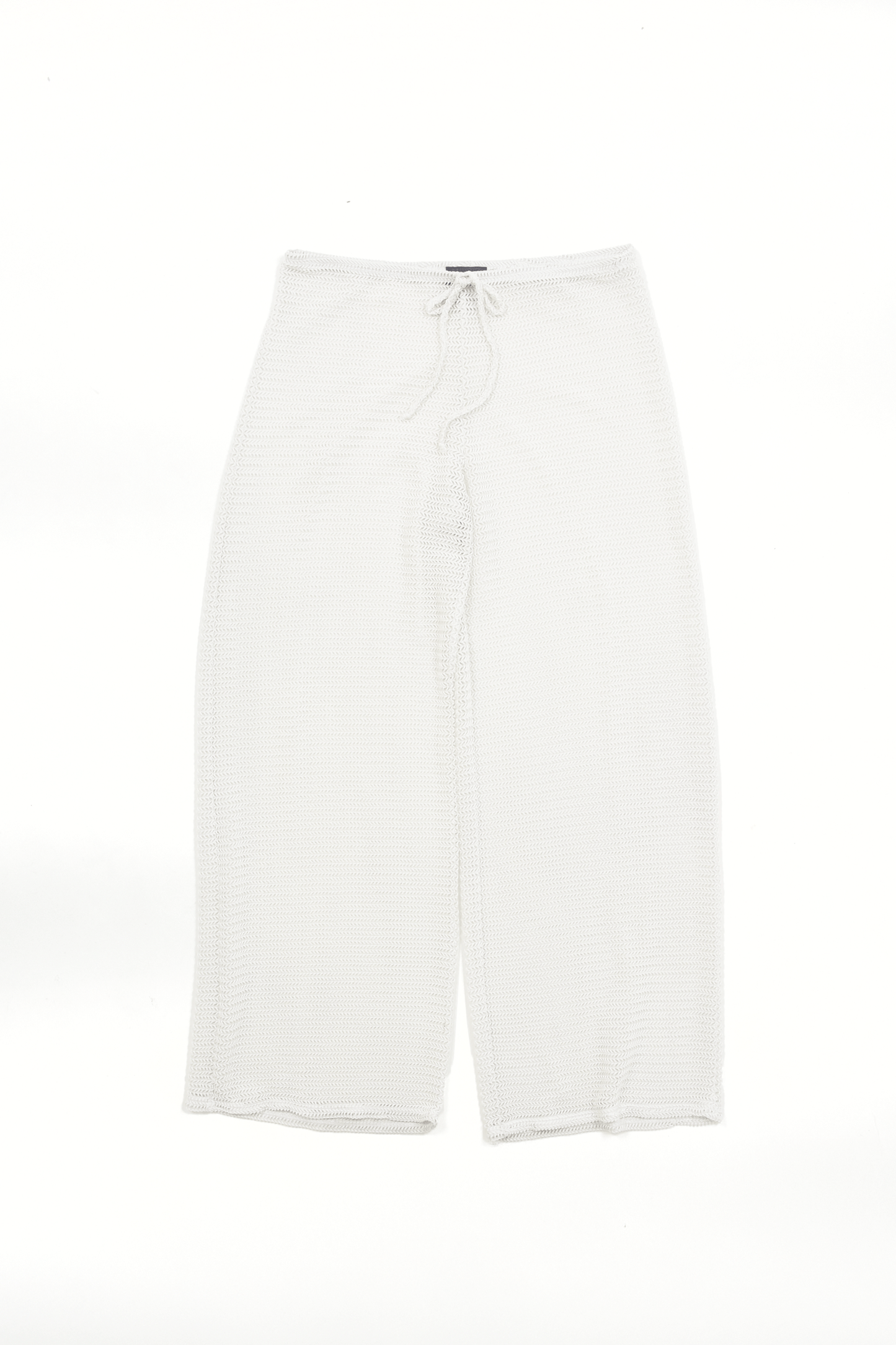 透け感ある葉っぱのような編目のデザインが涼しげなメッシュパンツ
