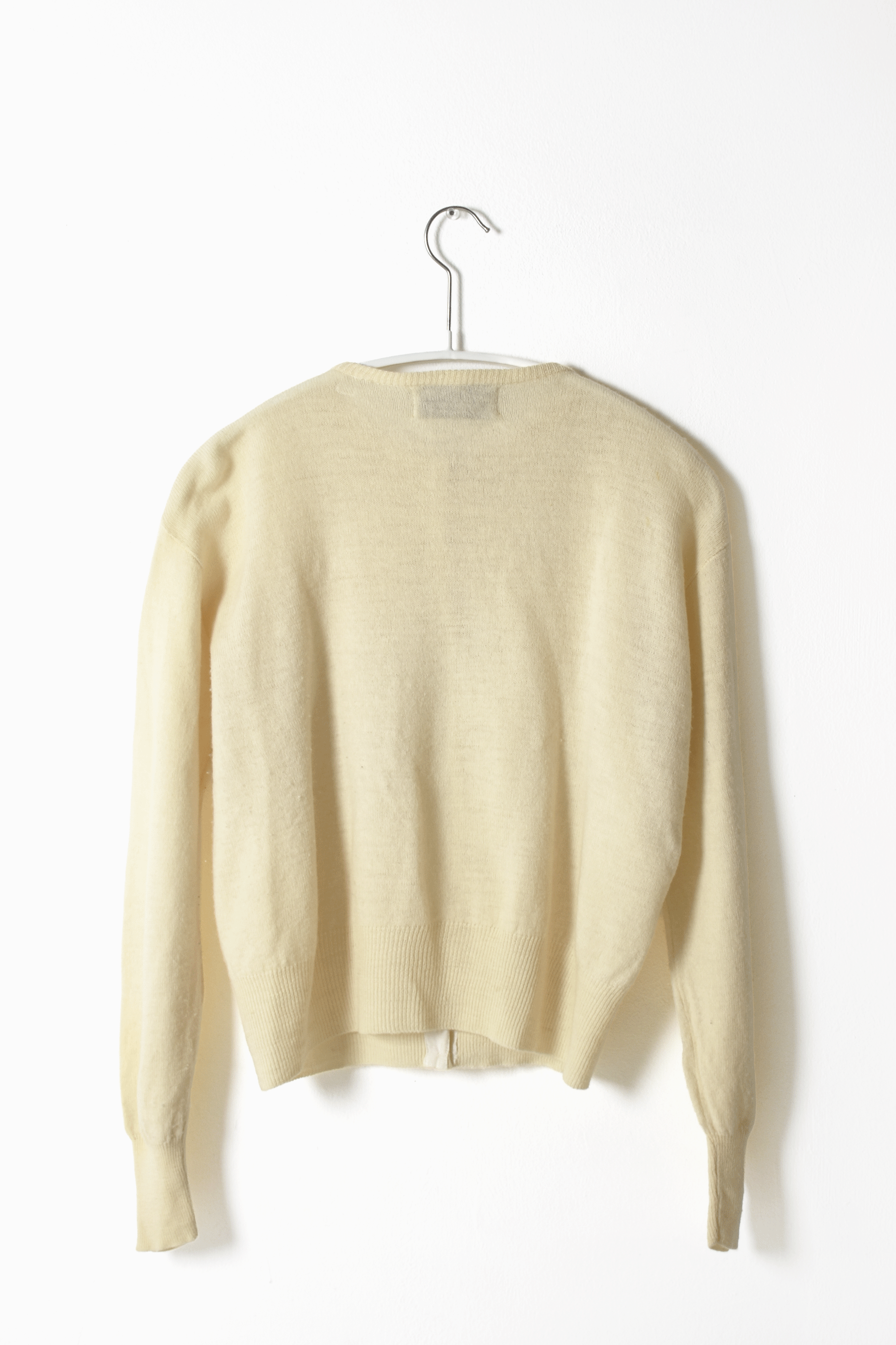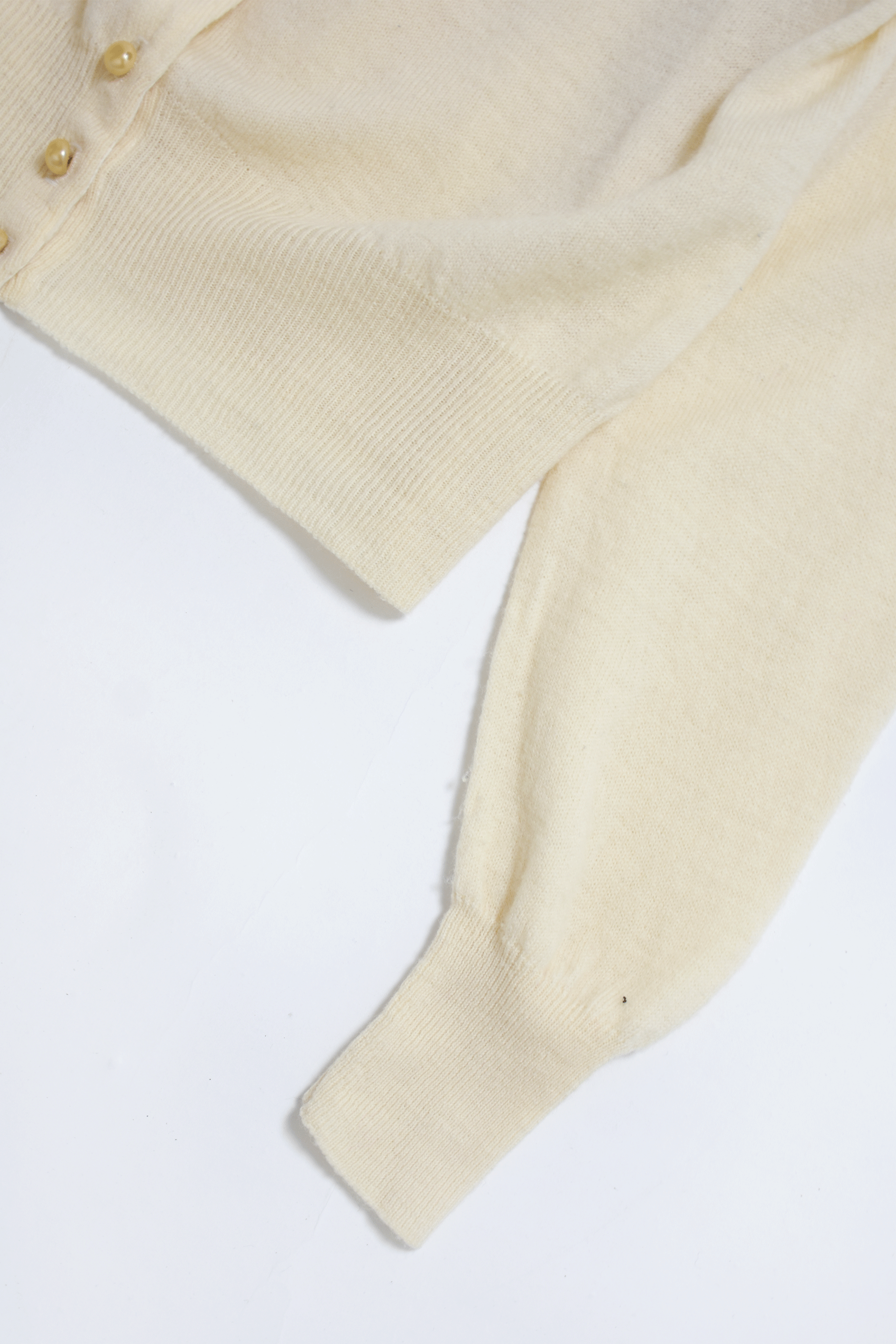 素材はそれぞれアンゴラやウール、コットンなど、デザインとアンティークホワイトのカラーも同様に、当時のナチュラルで奥ゆかしさが着るとプラスできます。