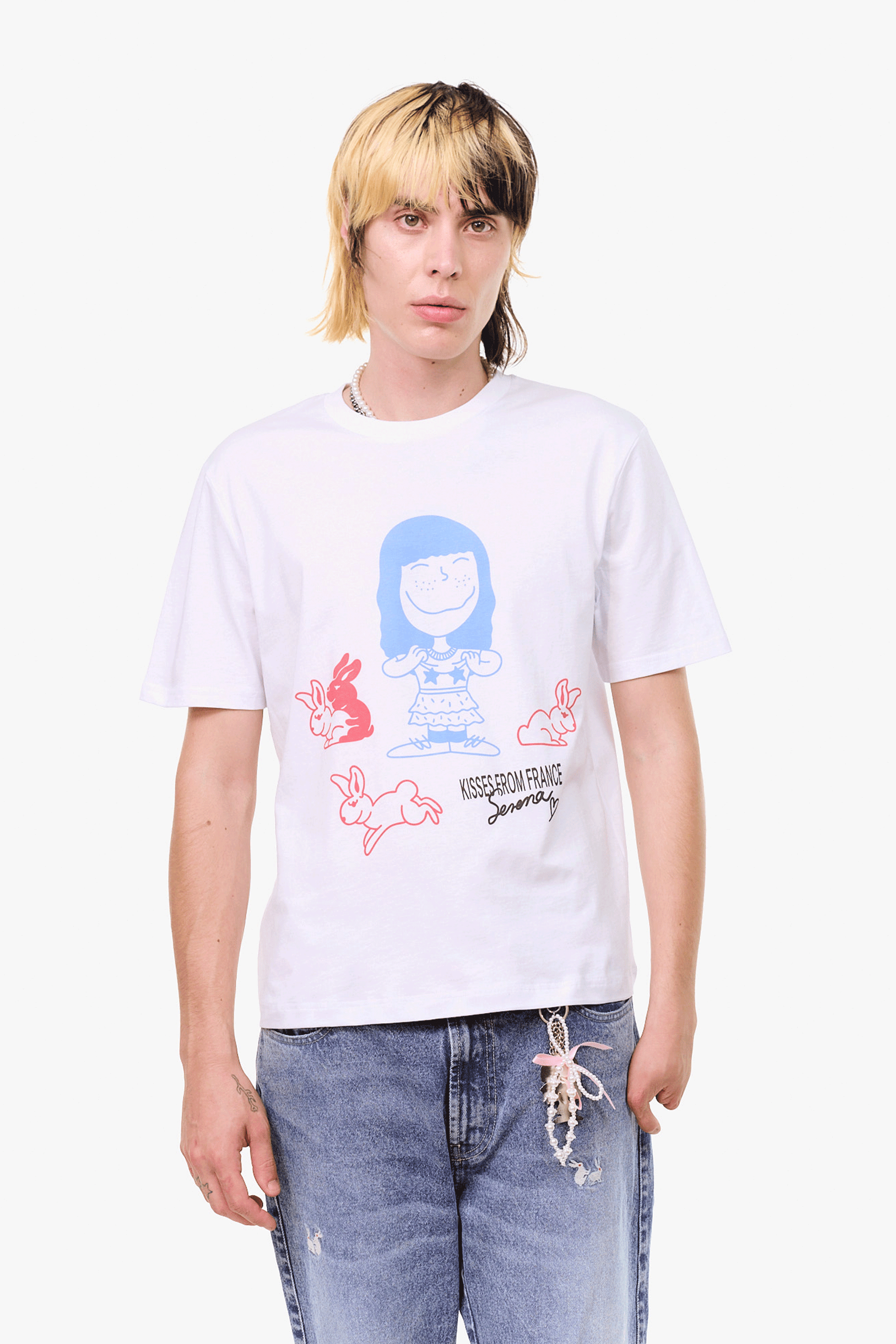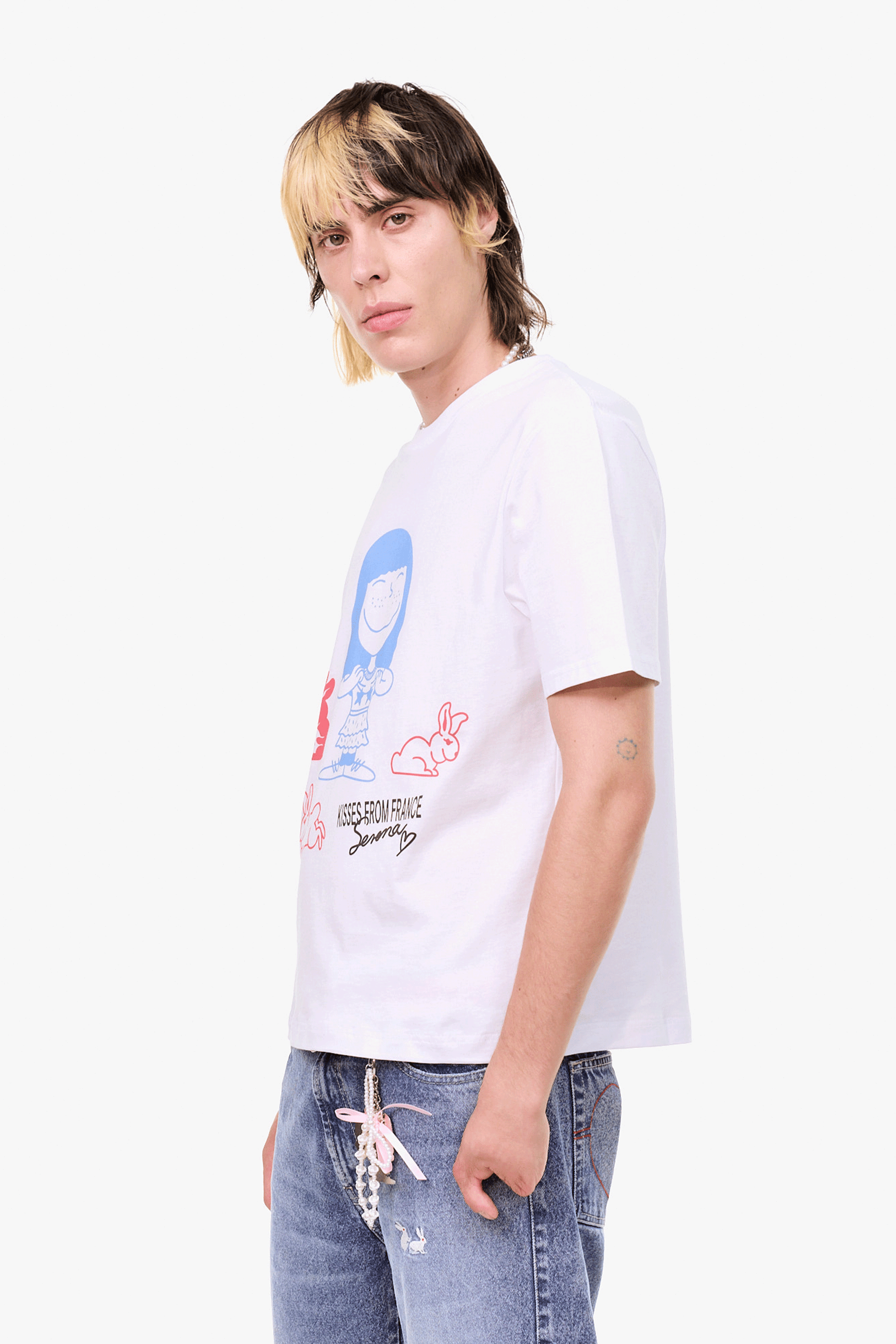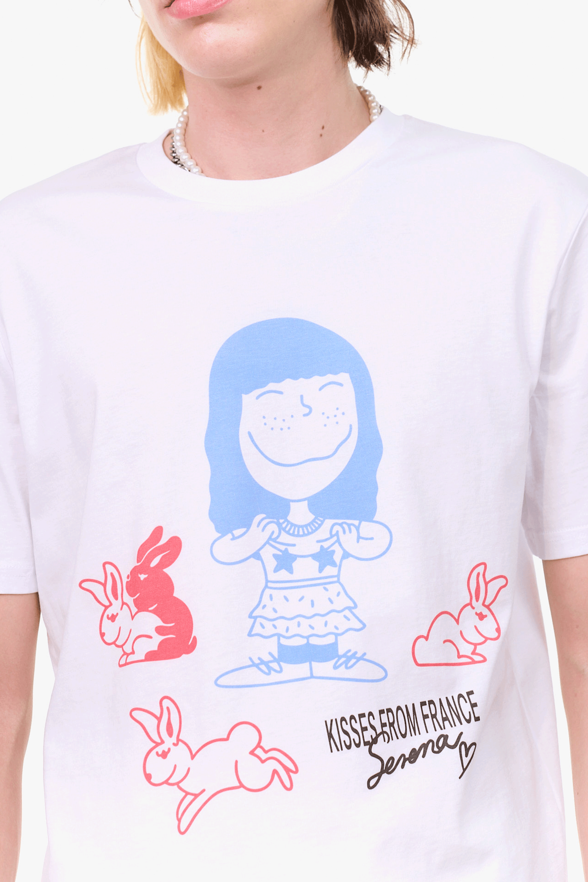 淡いカラーリングでキュートなグラフィックが乗ったティシャツ。