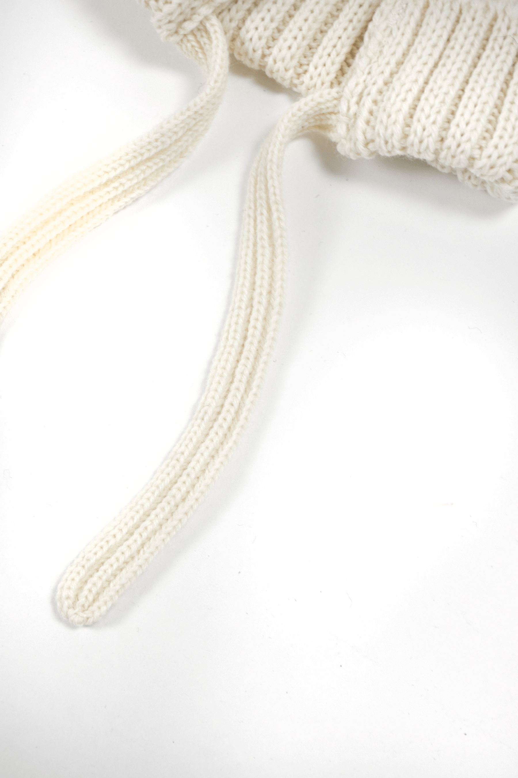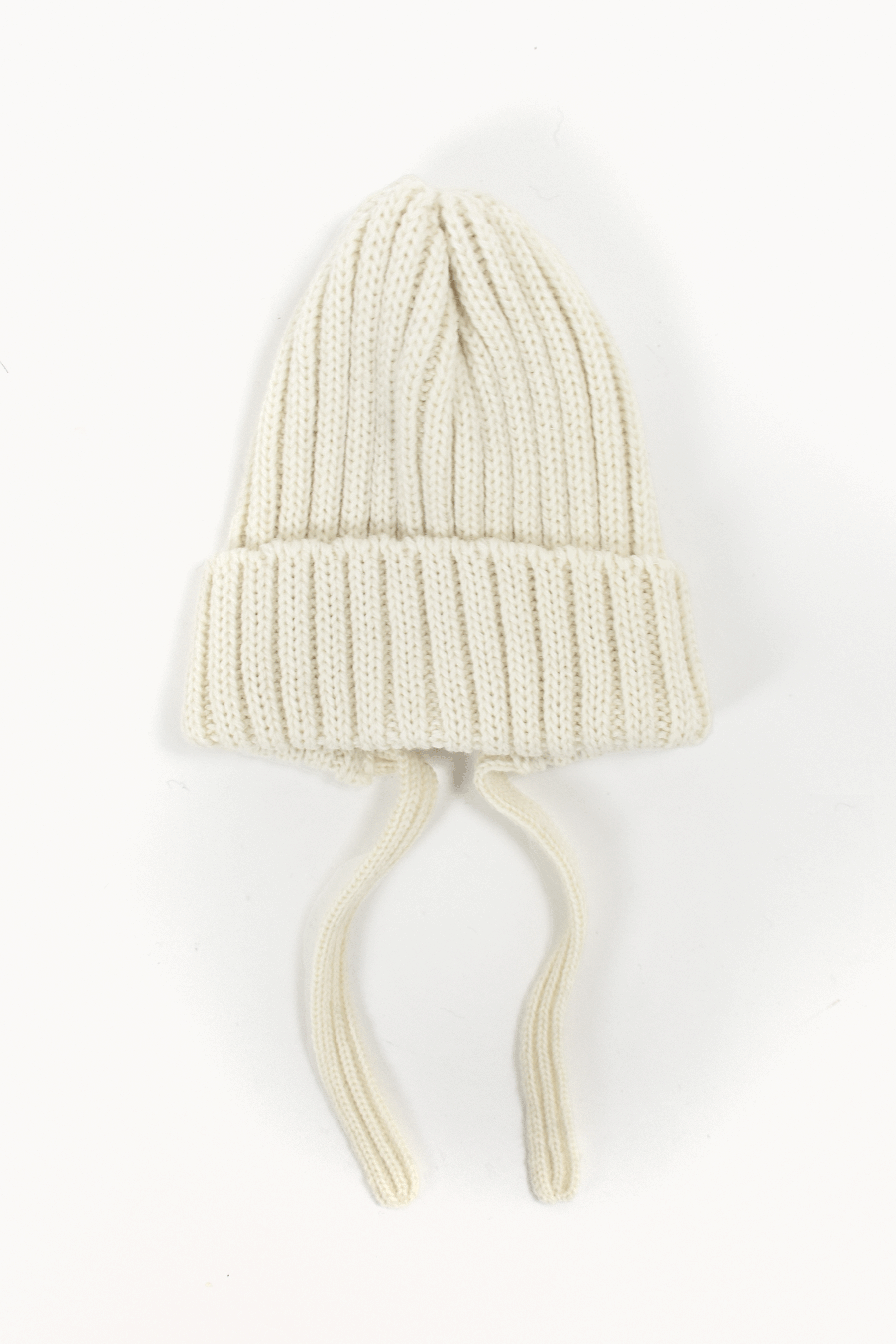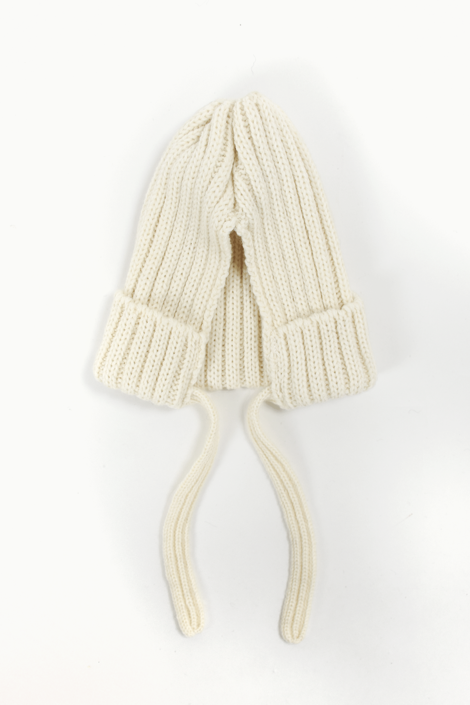 コンパクトな見た目と太めのコードとのバランスがいいです。スリットの入ったバックスタイルが収まり良く、結んでいても被れるデザインになっています。コード部分を結んでフードにしても可愛いです。