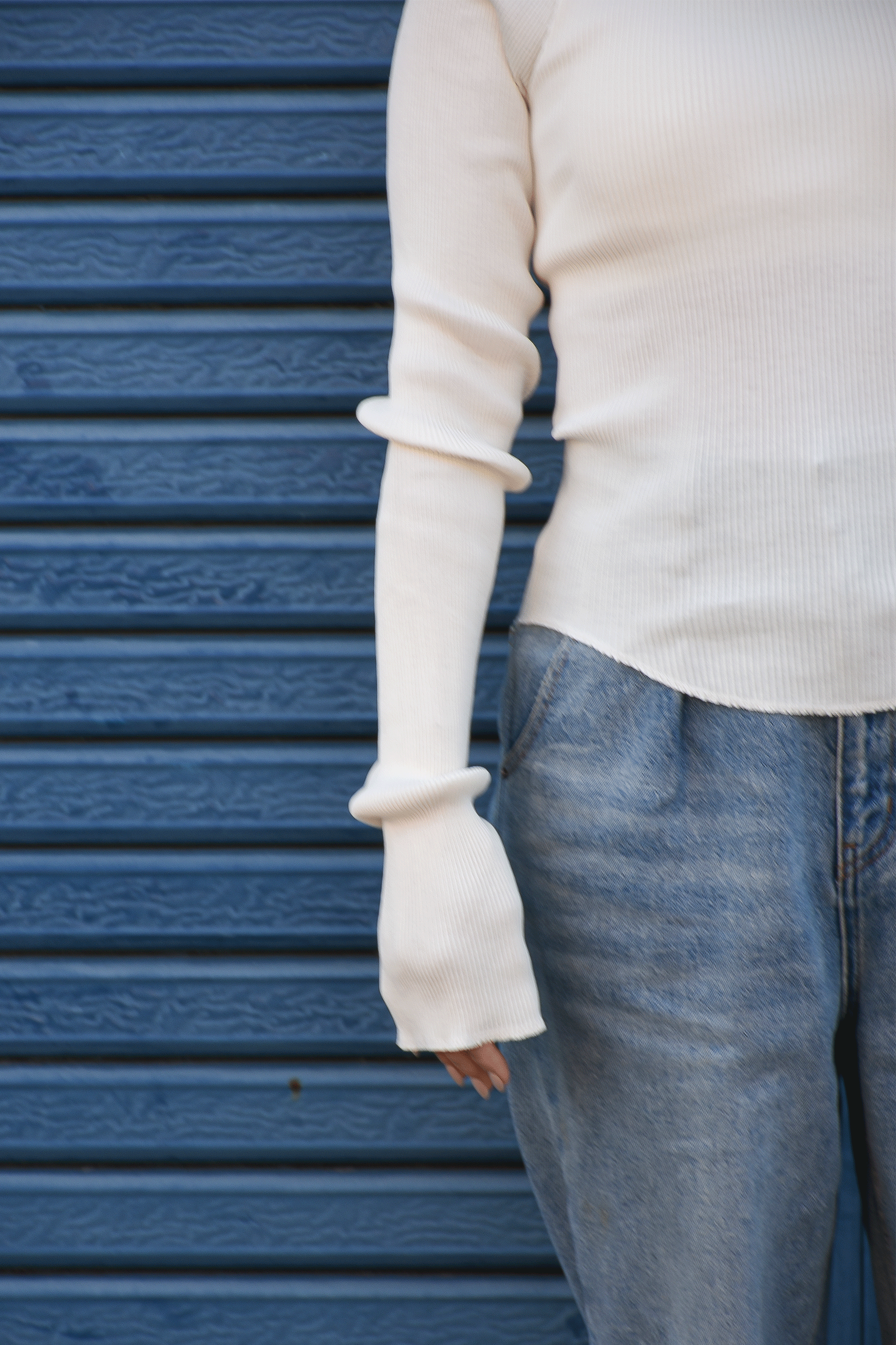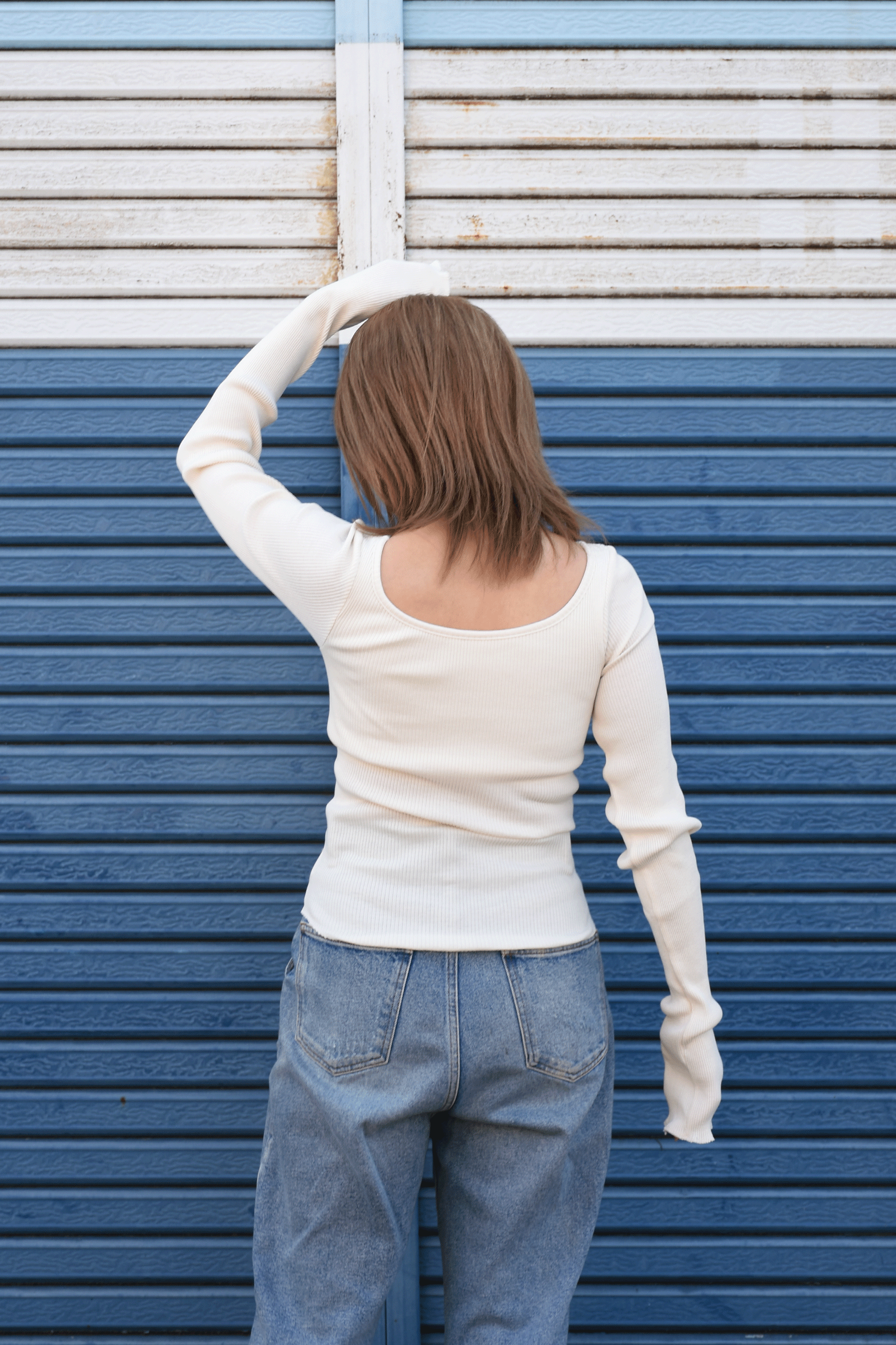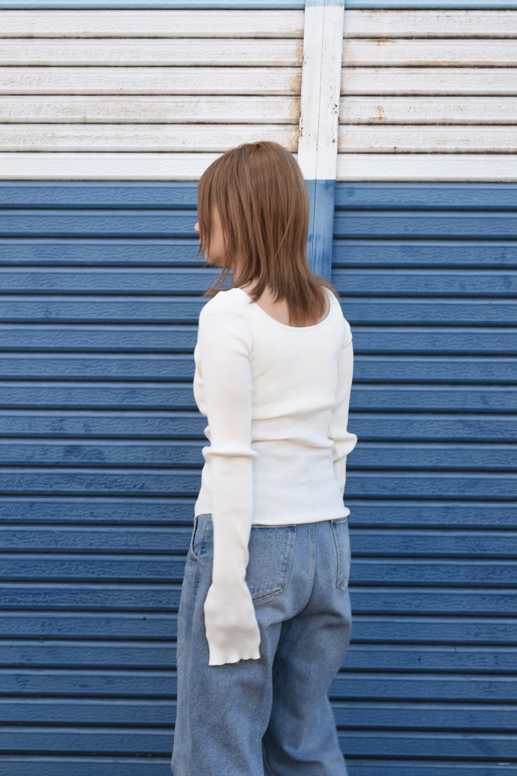 縫いつけのカップ付きで一枚で肩の力をぬいて着られるリブトップス