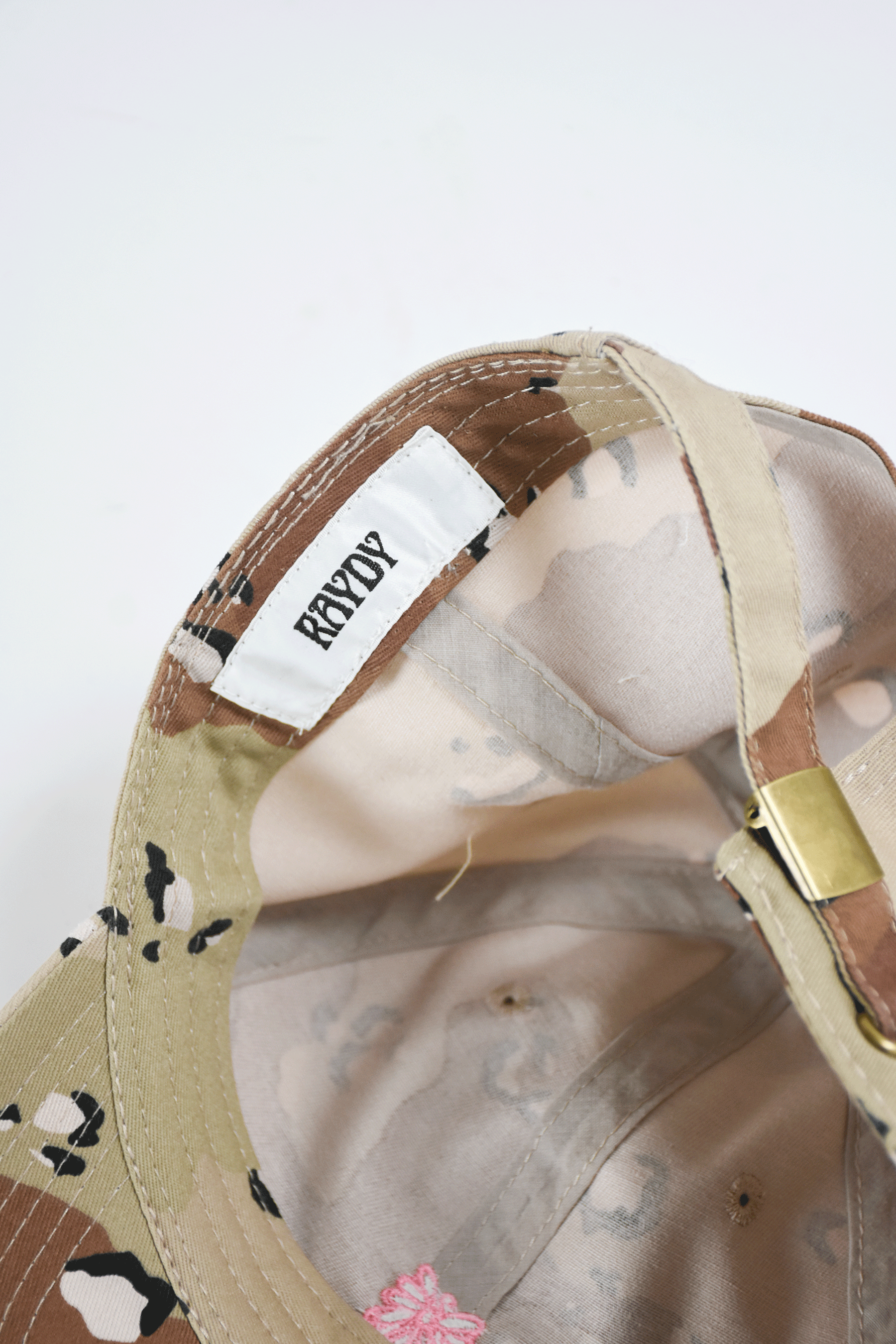 RAYDYフラワーチルドレン刺繍入りダットキャップカラーにこだわりました。リップや爪、小物など、スタイリングのどこかにキャップの色や、刺繍の色を入れてみるのも可愛いです。簡単にサイズ調節可能なユニセックス仕様になっています。
