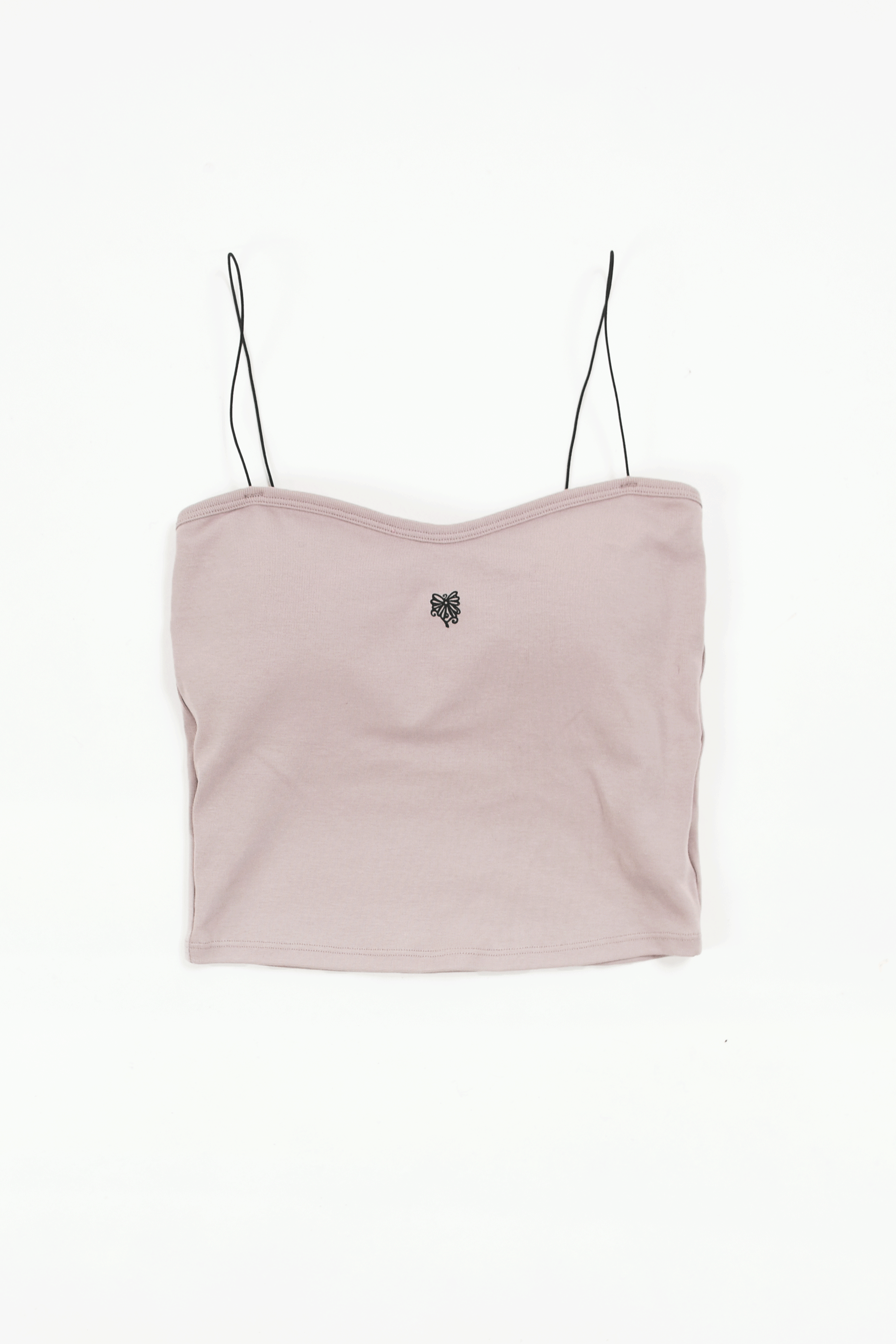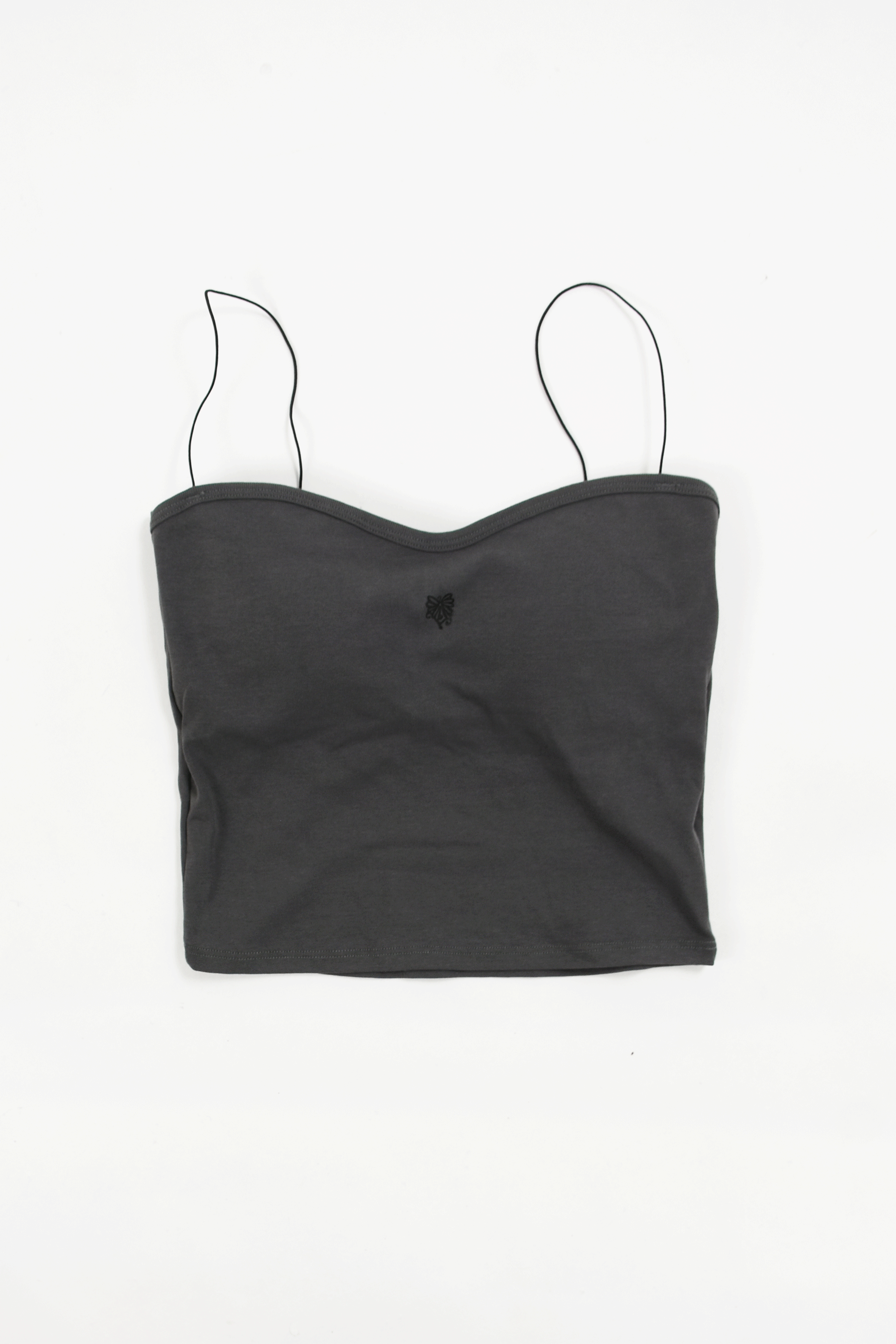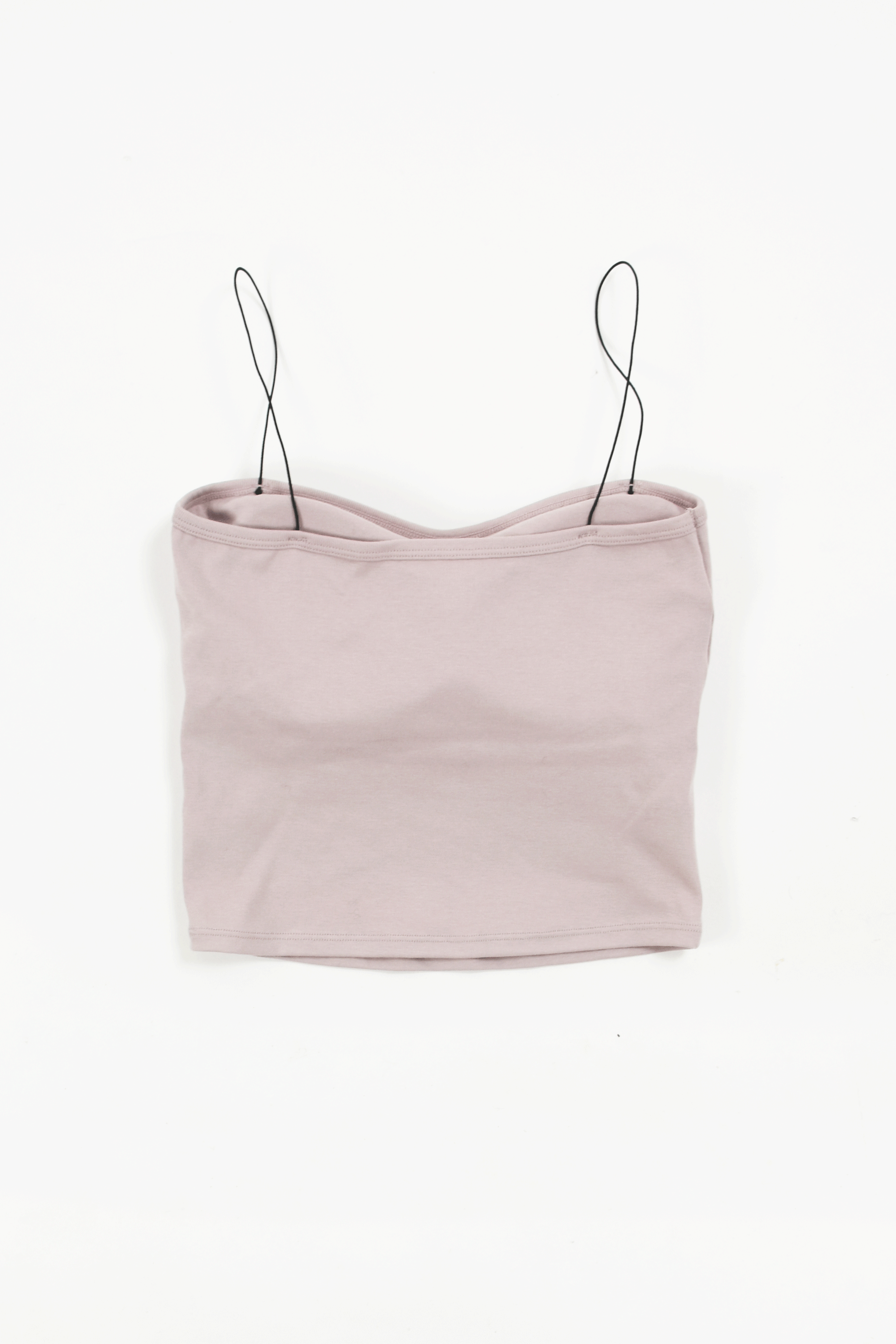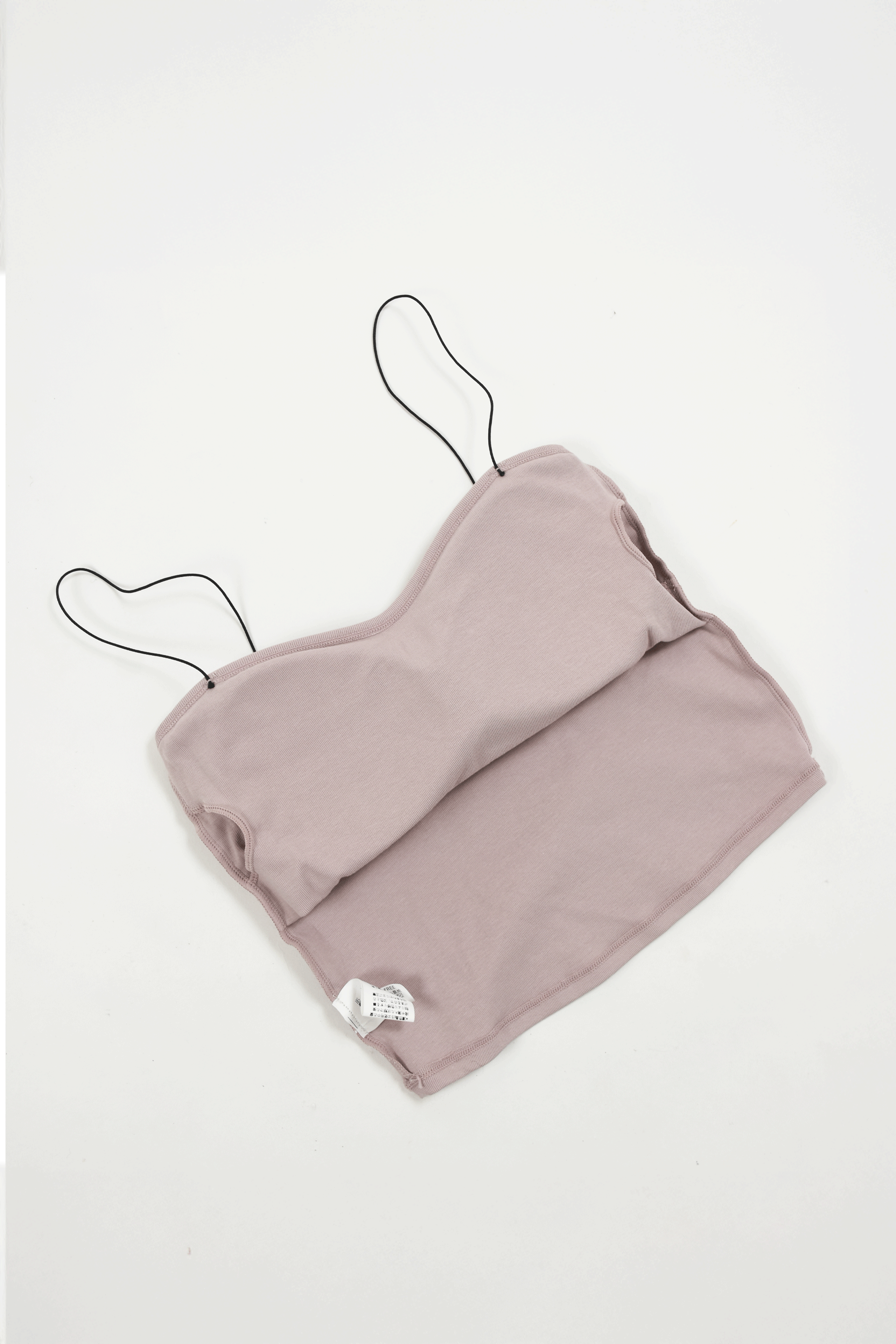 細めのストラップでデコルテ周りをスッキリ見せてくれるカップ付きキャミ。