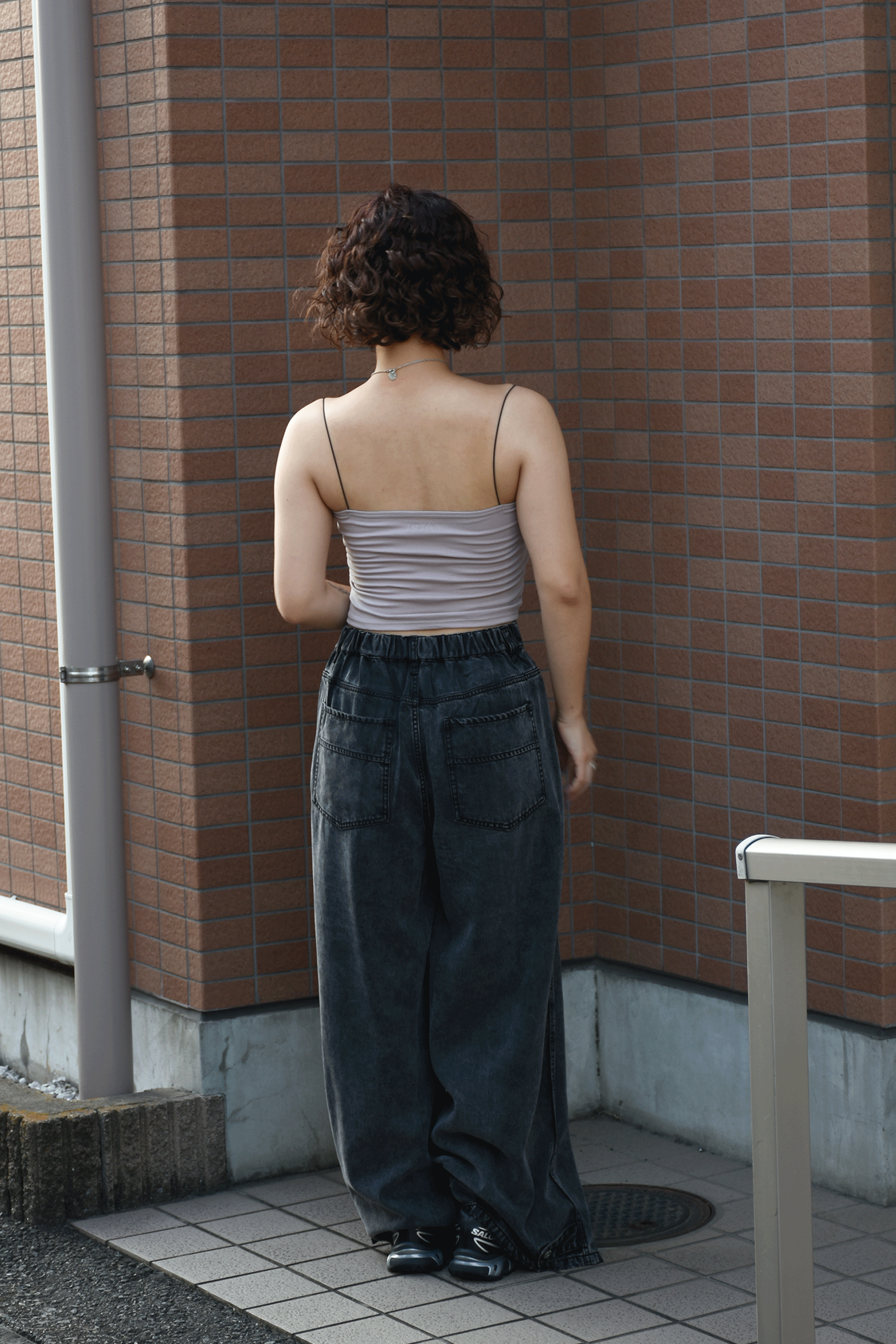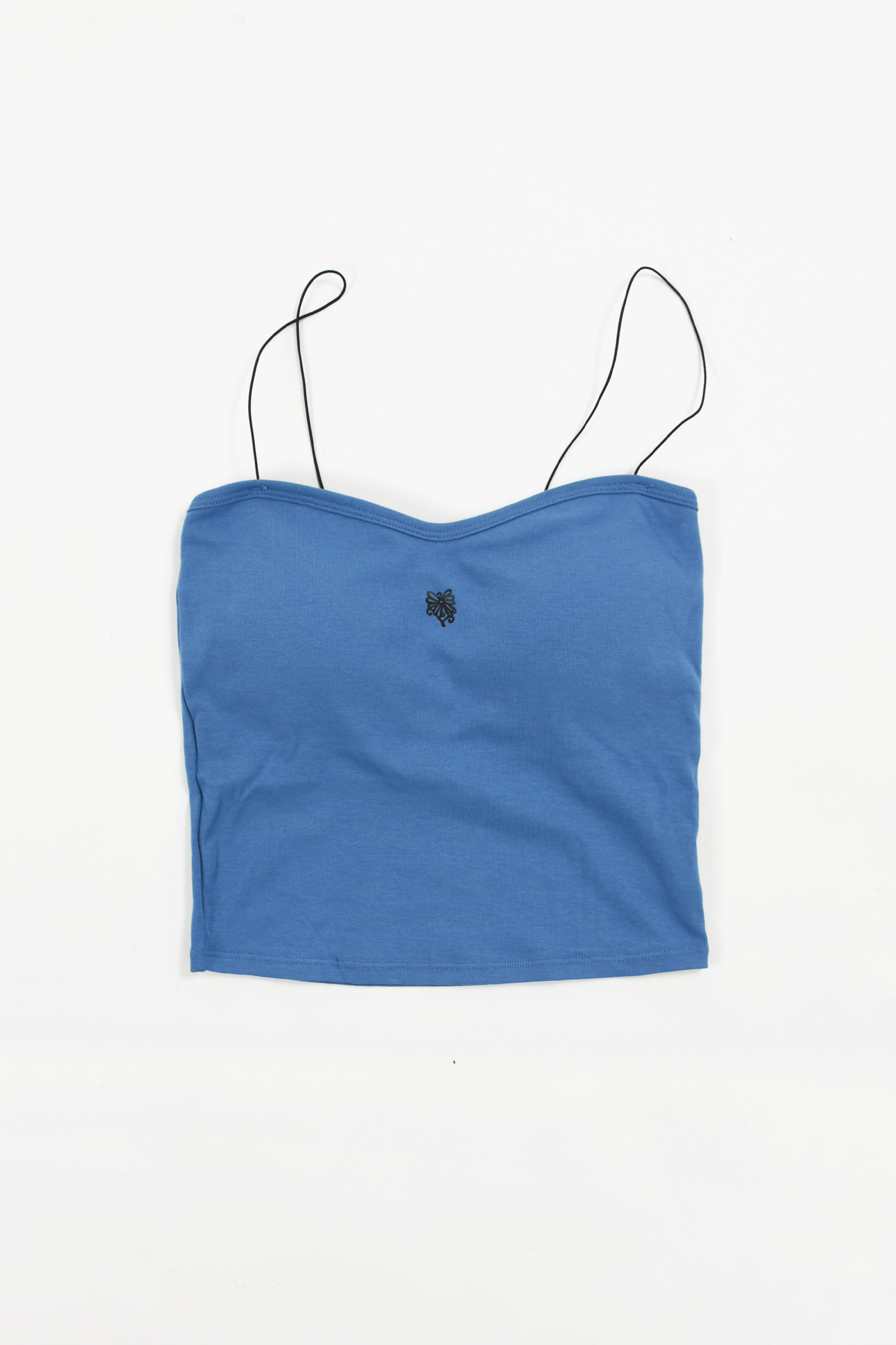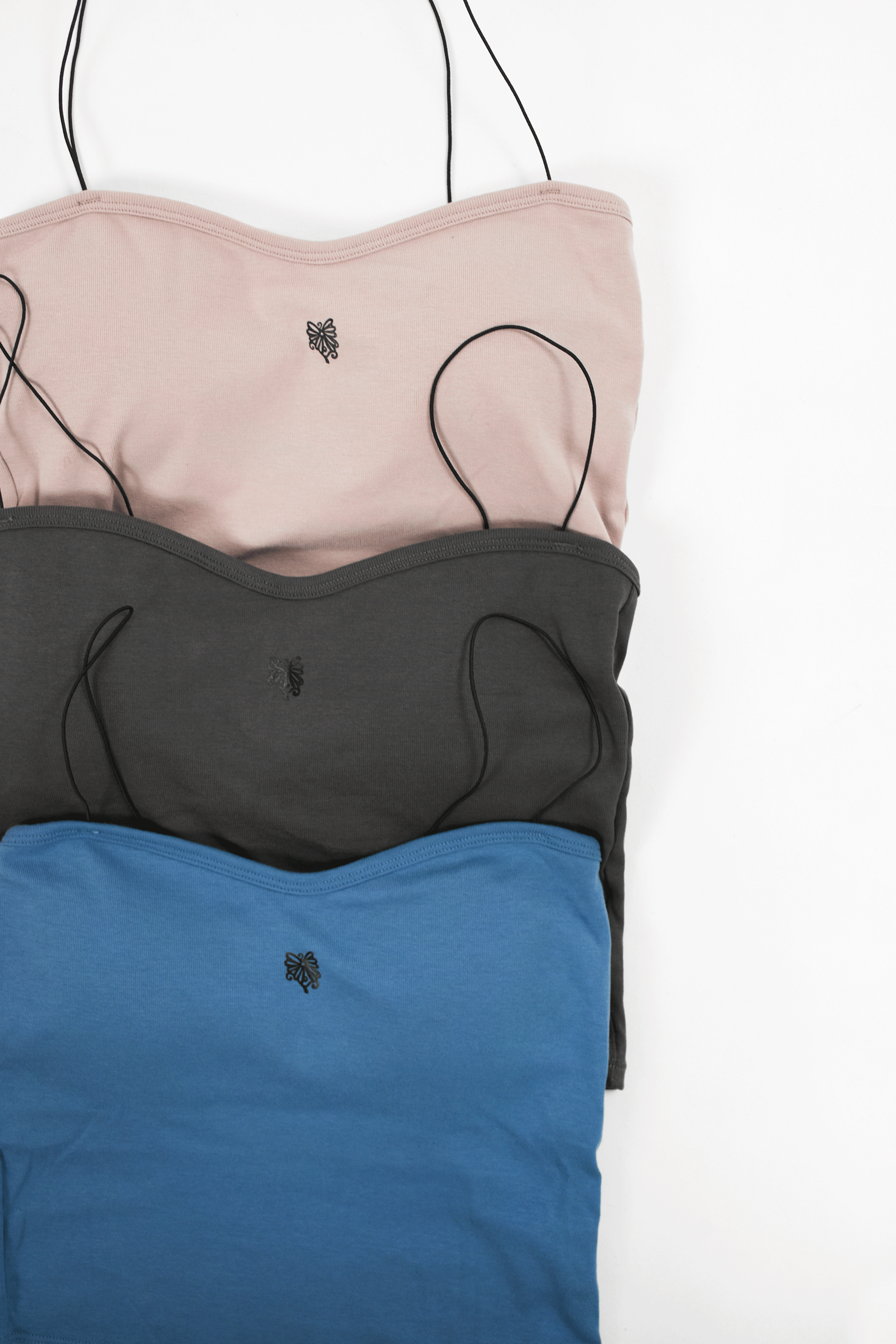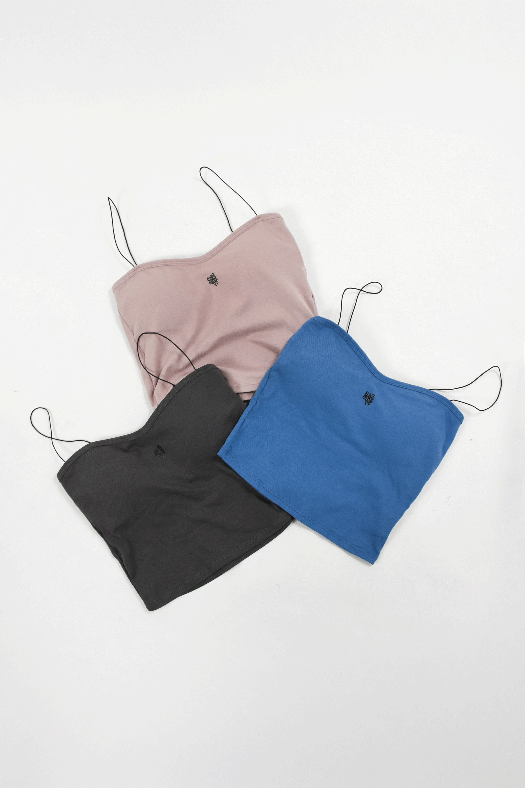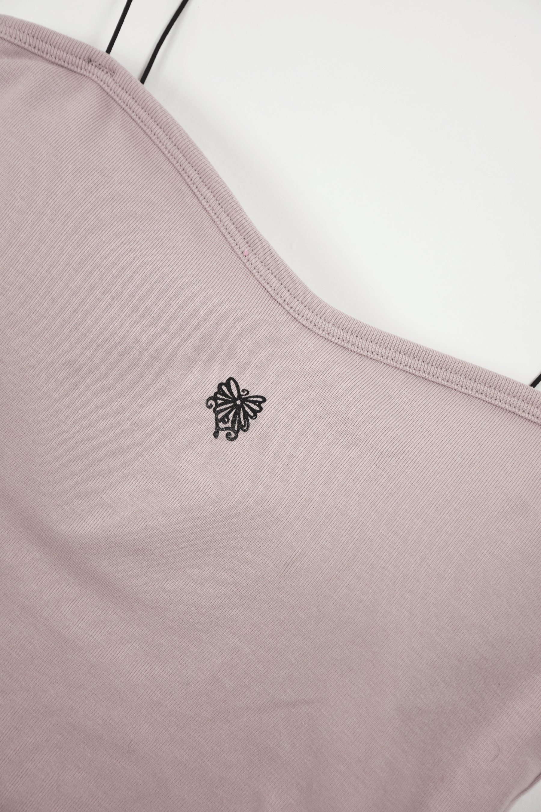 細めのストラップでデコルテ周りをスッキリ見せてくれるカップ付きキャミ。