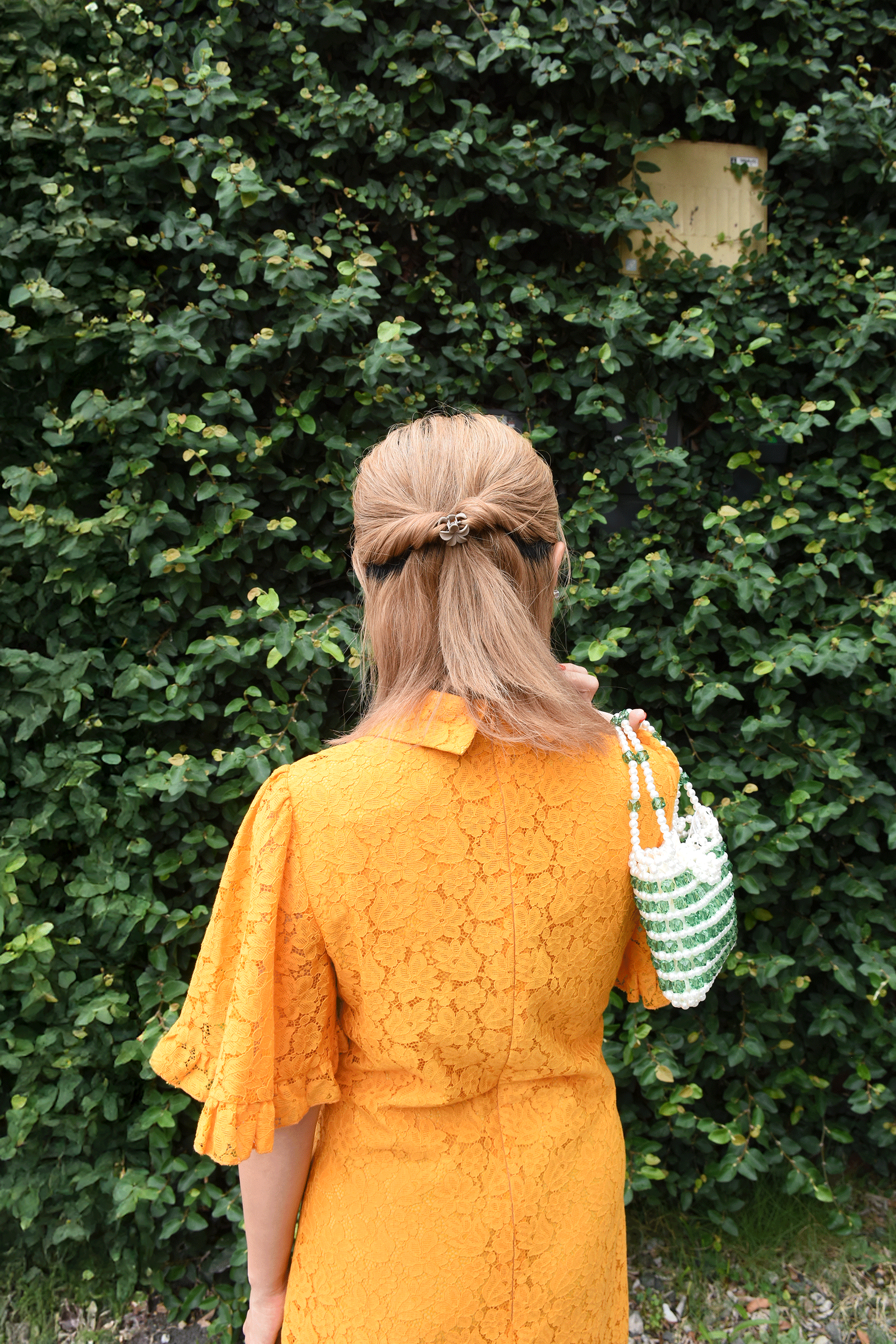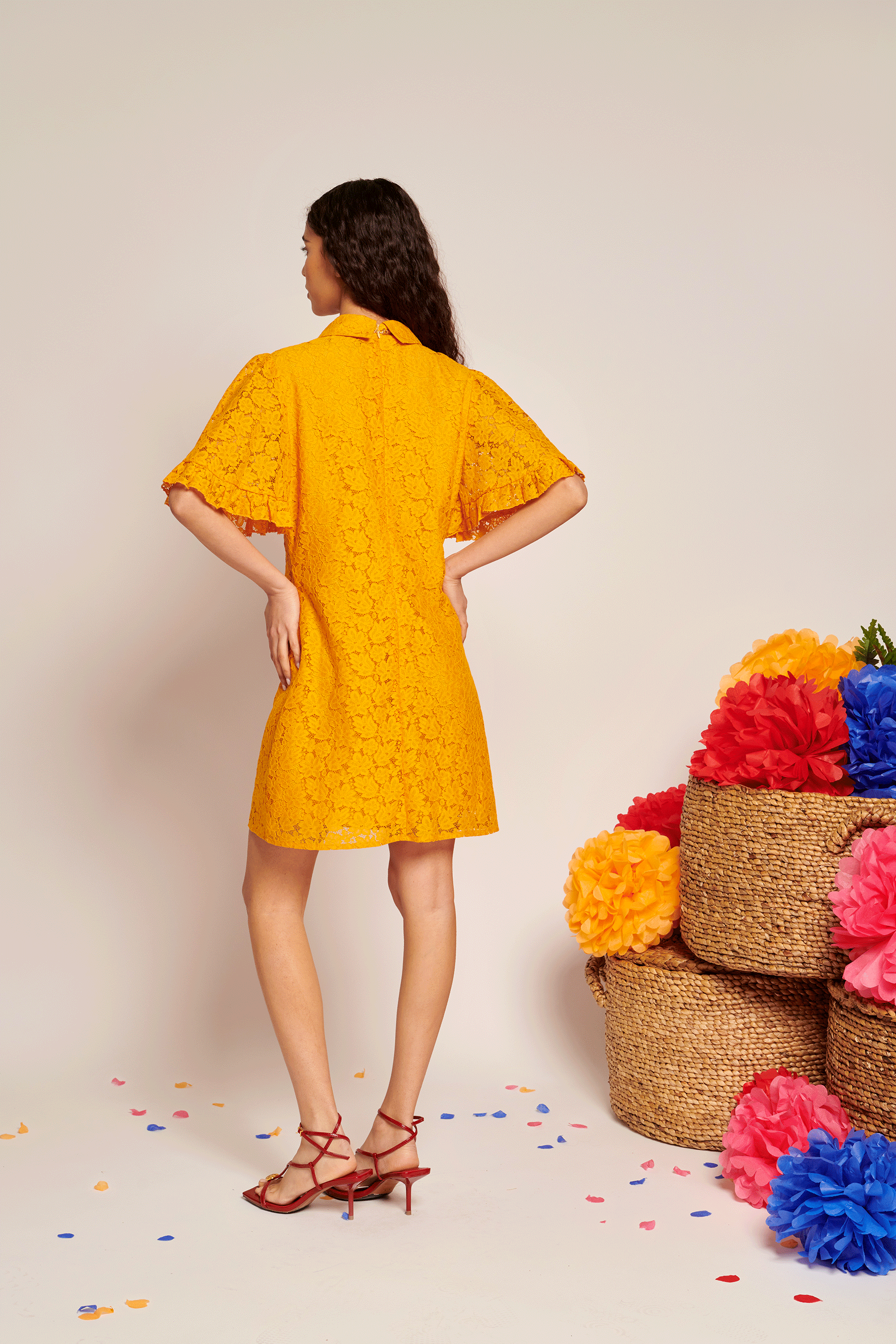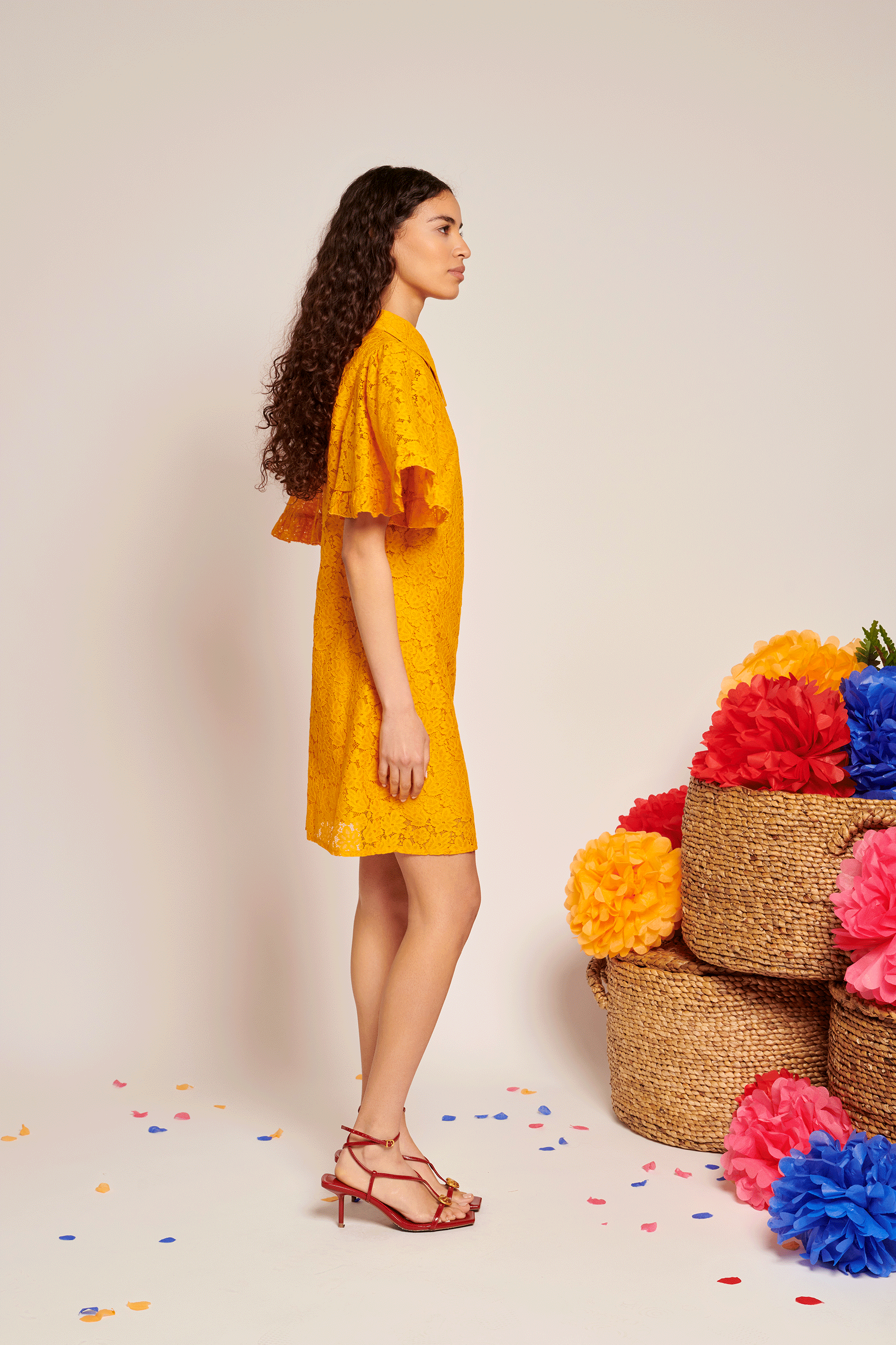 ふんわり広がるショートスリーブにはレースフリルがあしらわれ、透け感があって魅力的です。身体部分には裏地が施されていて、広がらずすっきりとしたシルエットで着れます。