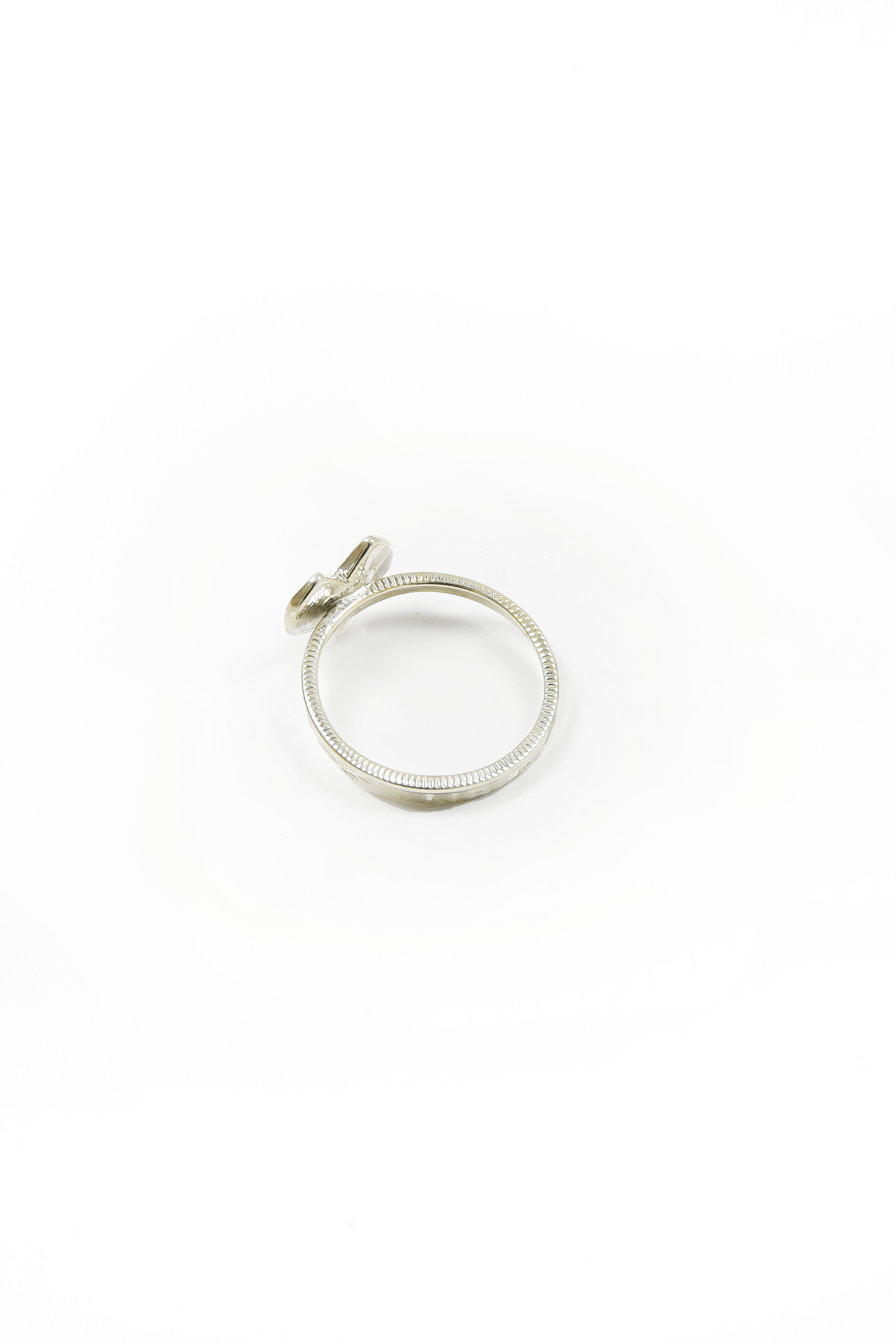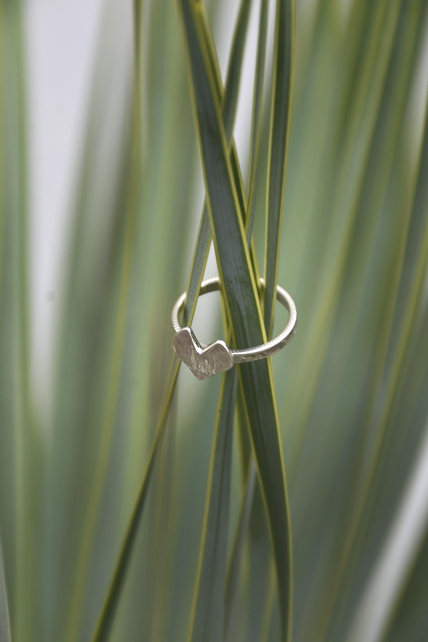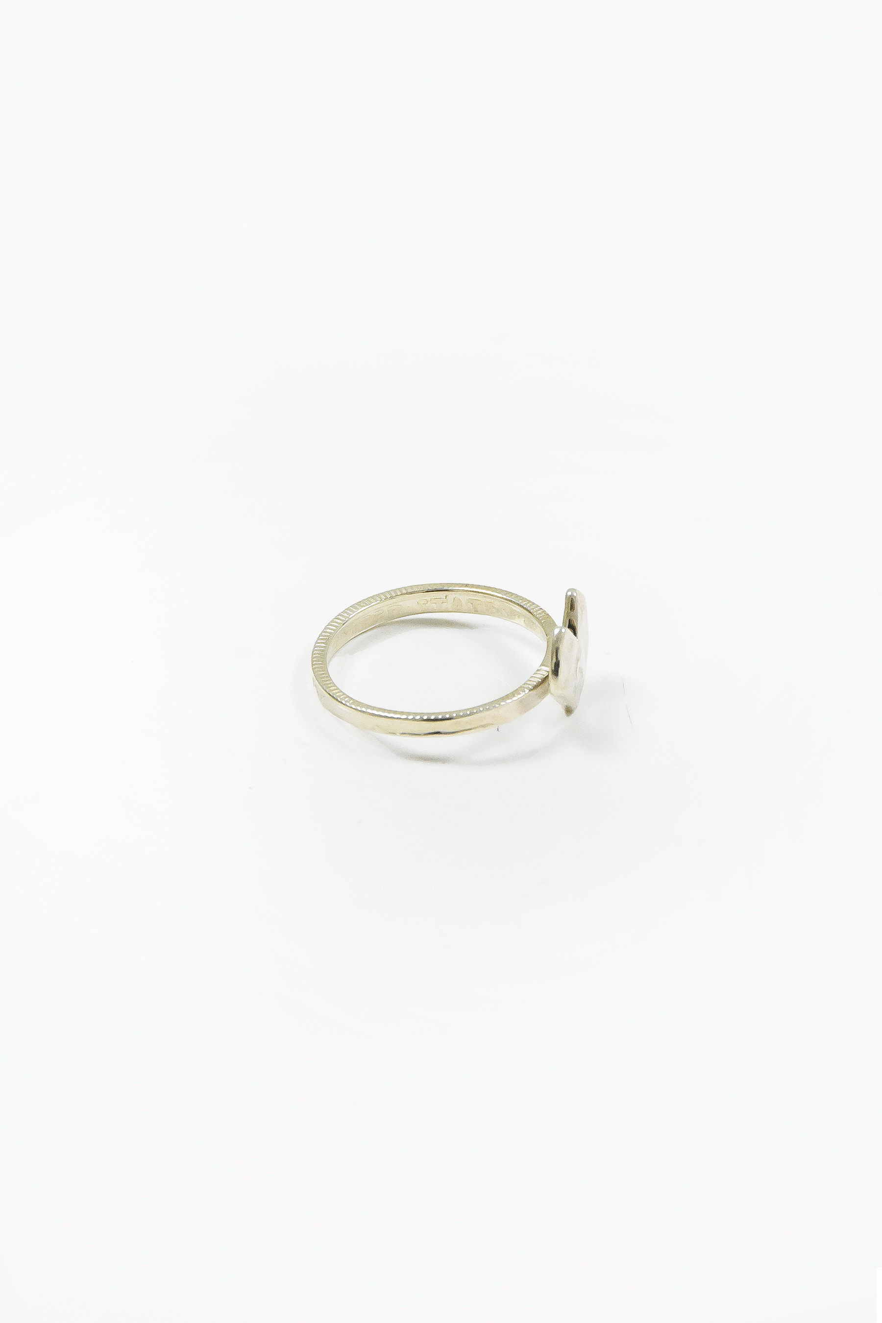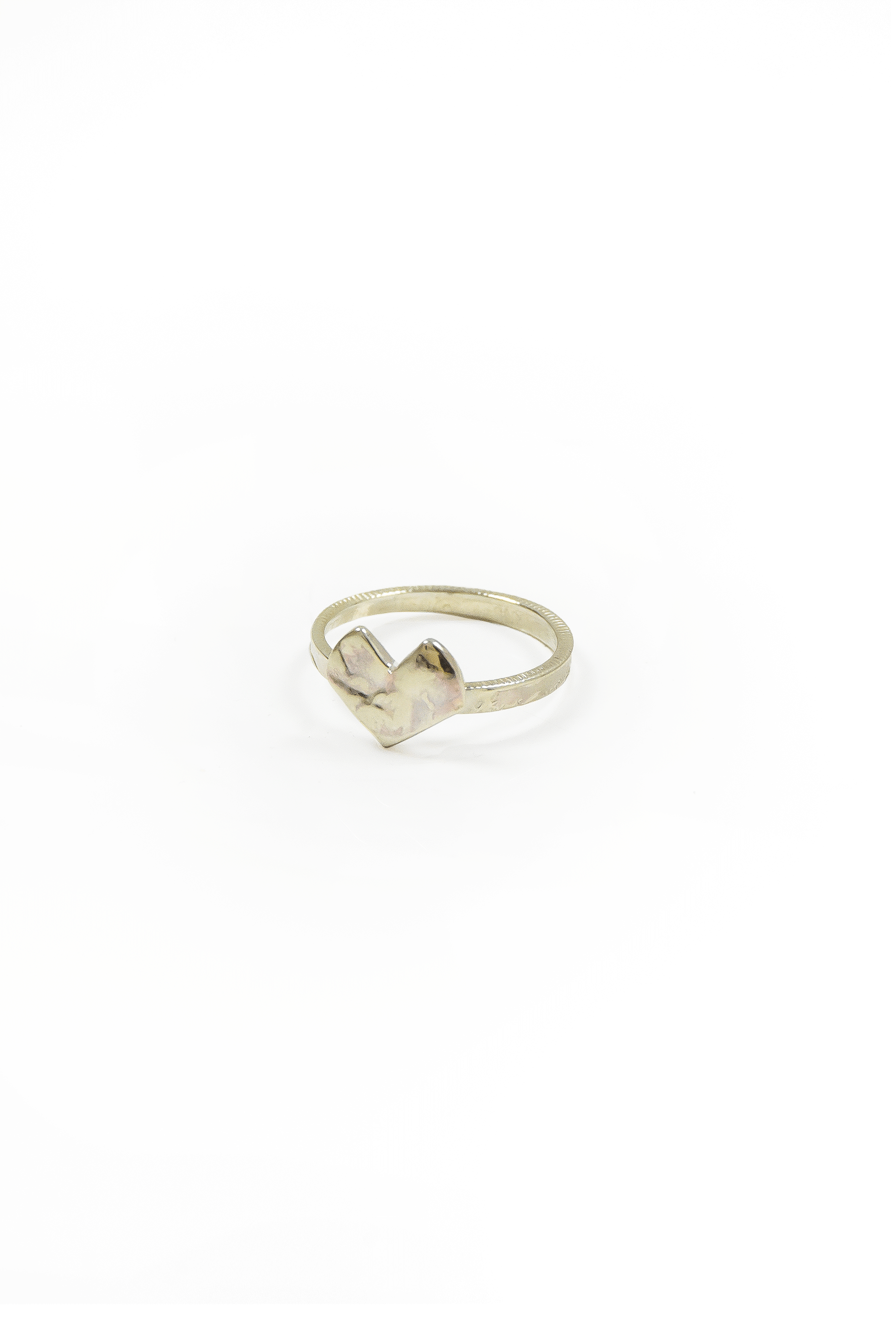 トライバルなハート形にカットされた小ぶりでさりげないコインリング