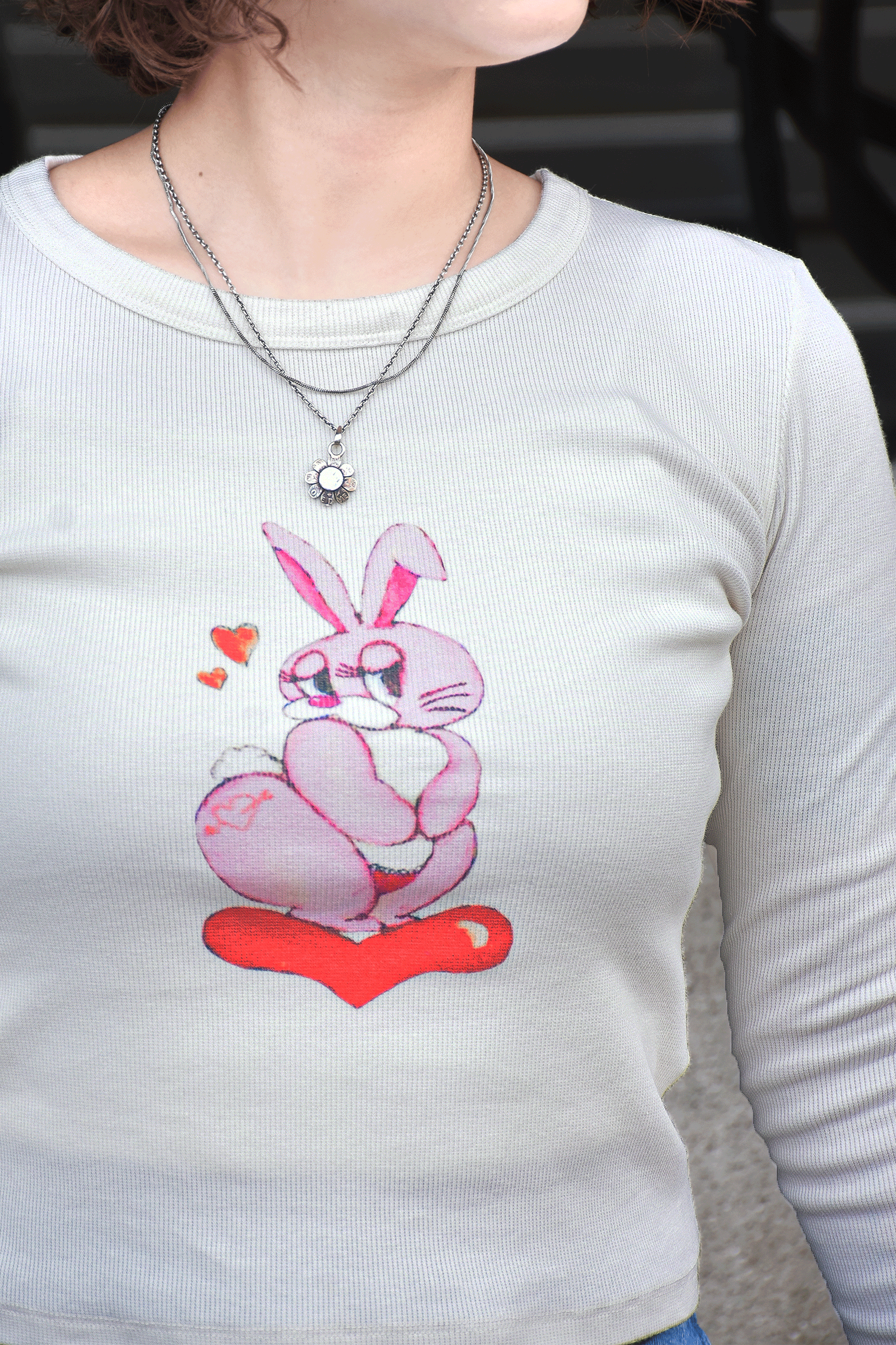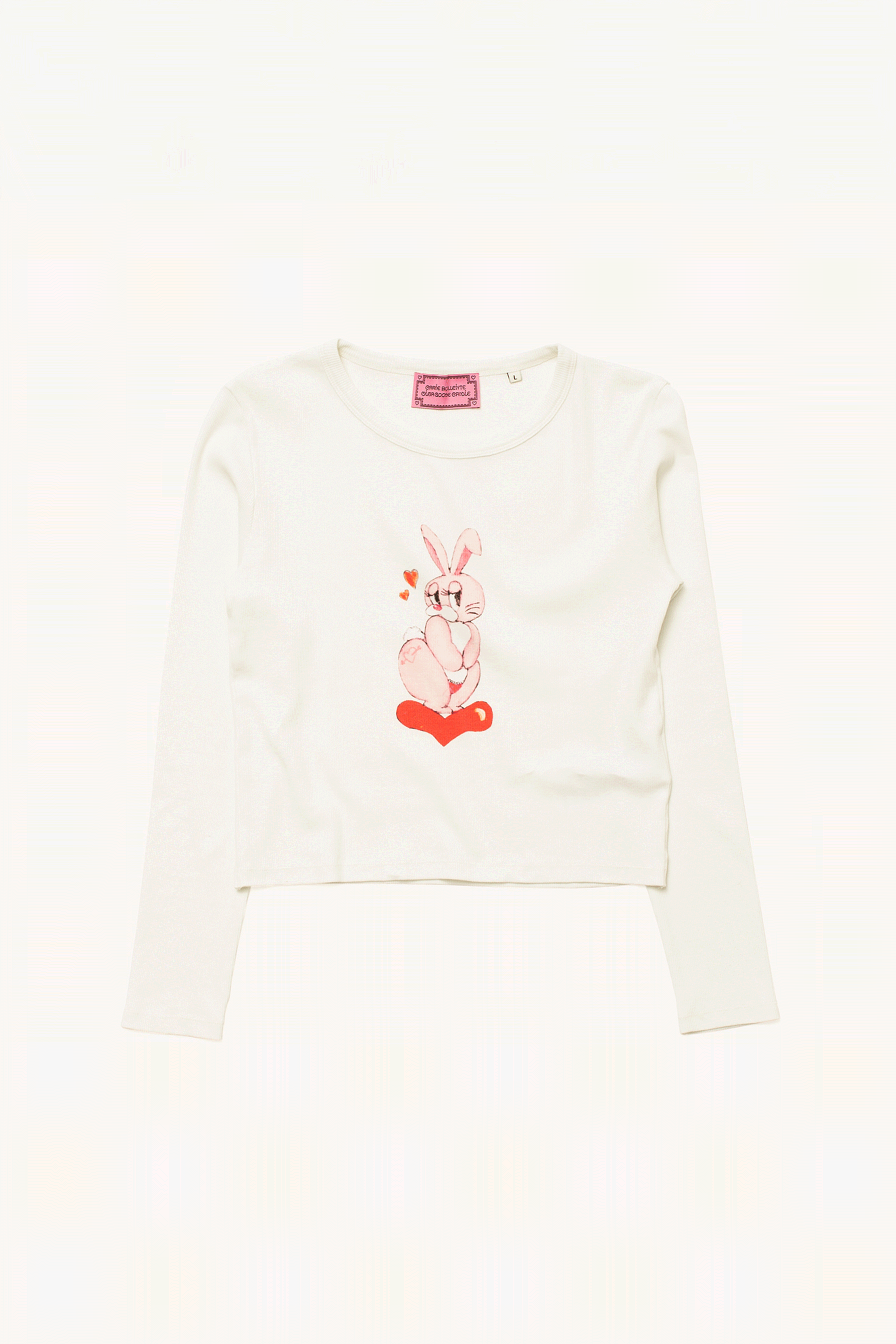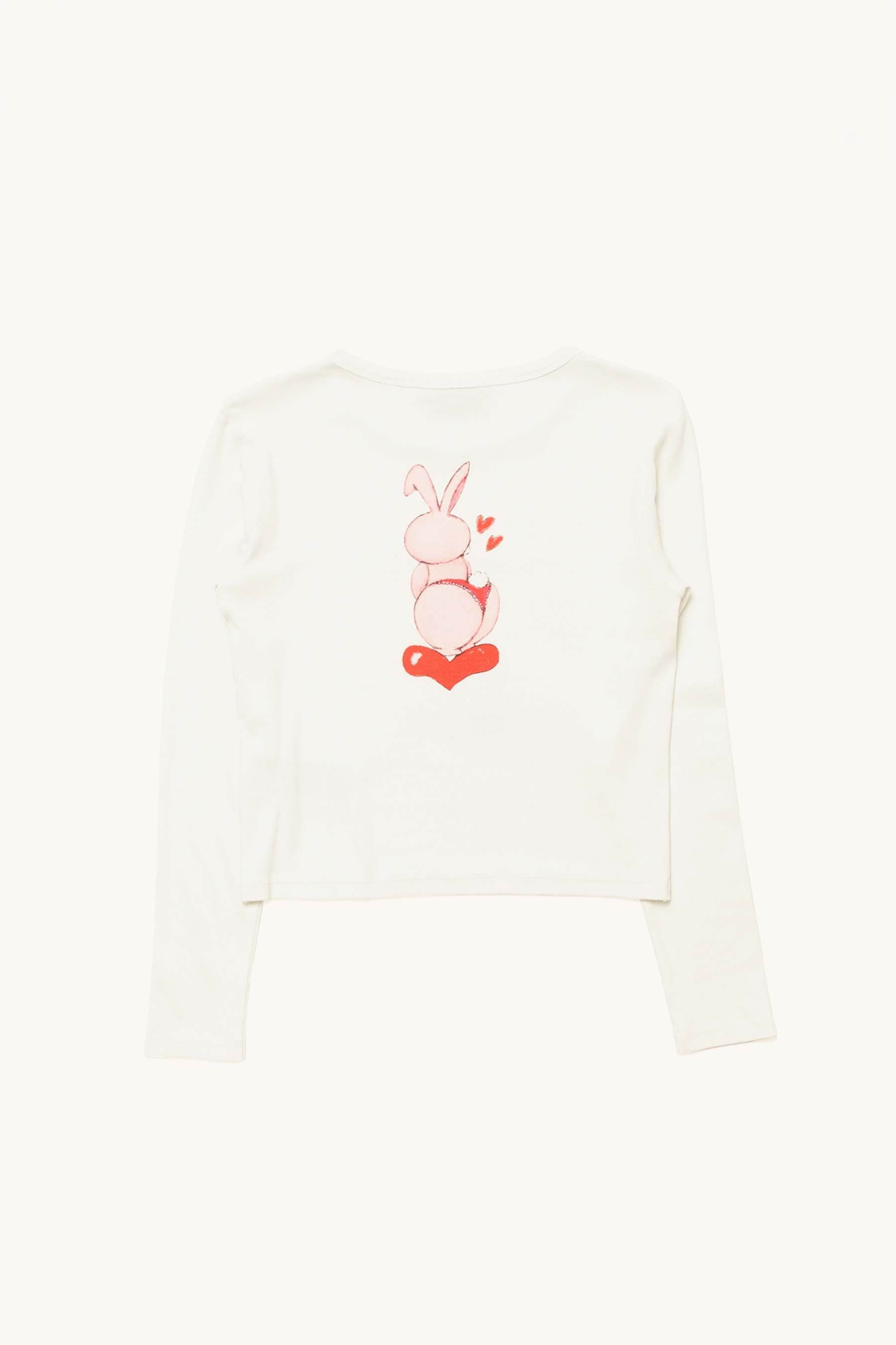 愛らしいバニーグラフィックのロングスリーブのトップス。