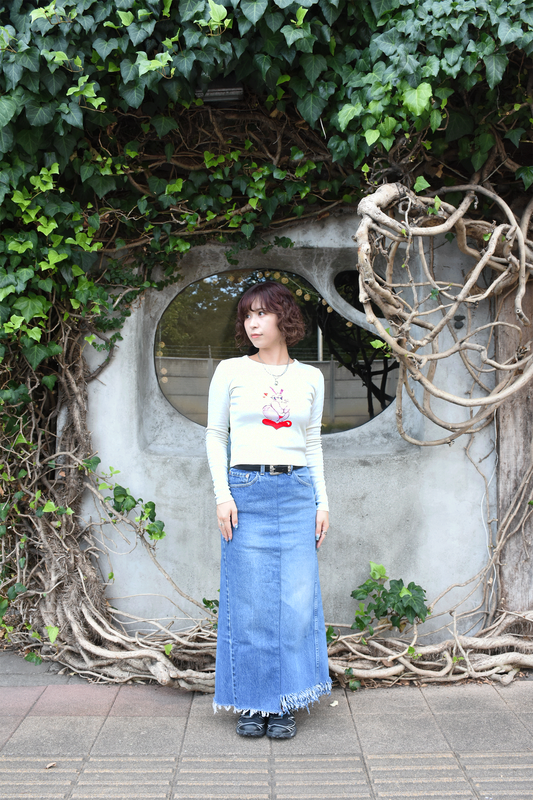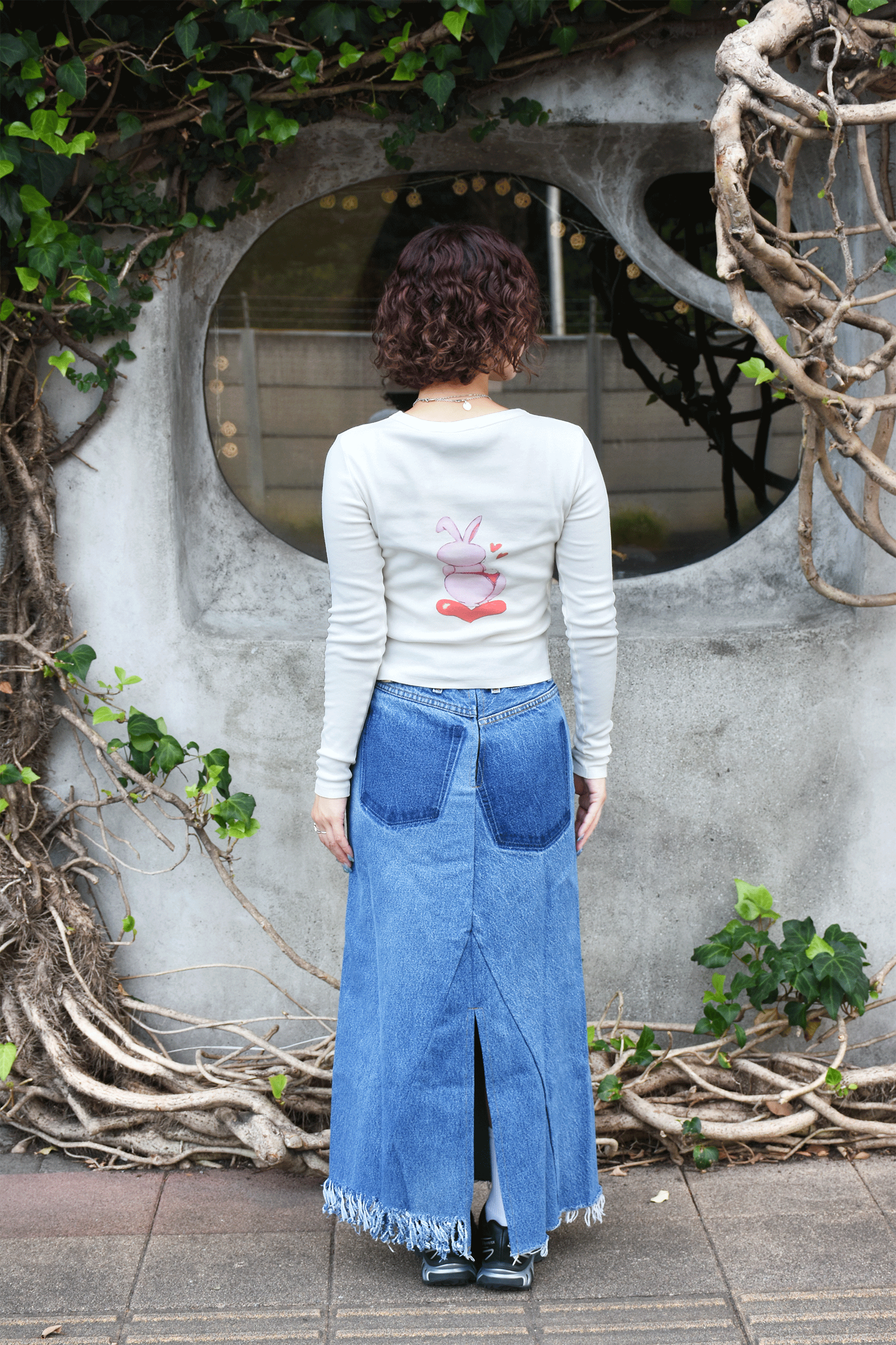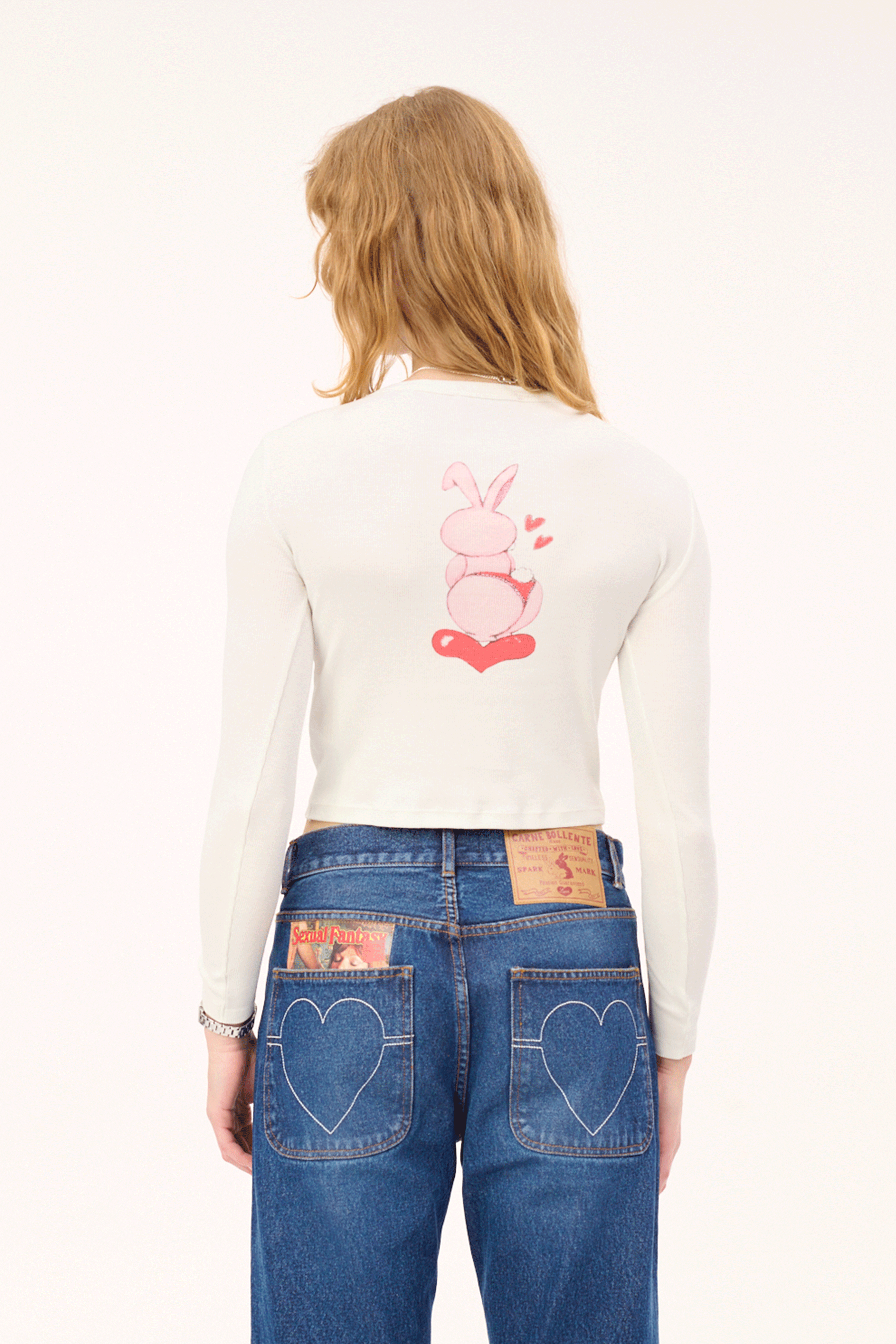 愛らしいバニーグラフィックのロングスリーブのトップス。