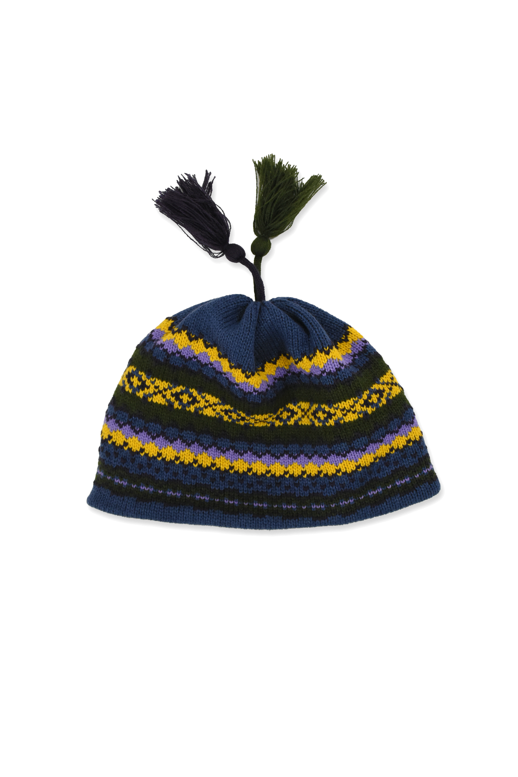 トップにはふわっとポンポン付きノルディック柄ビーニー