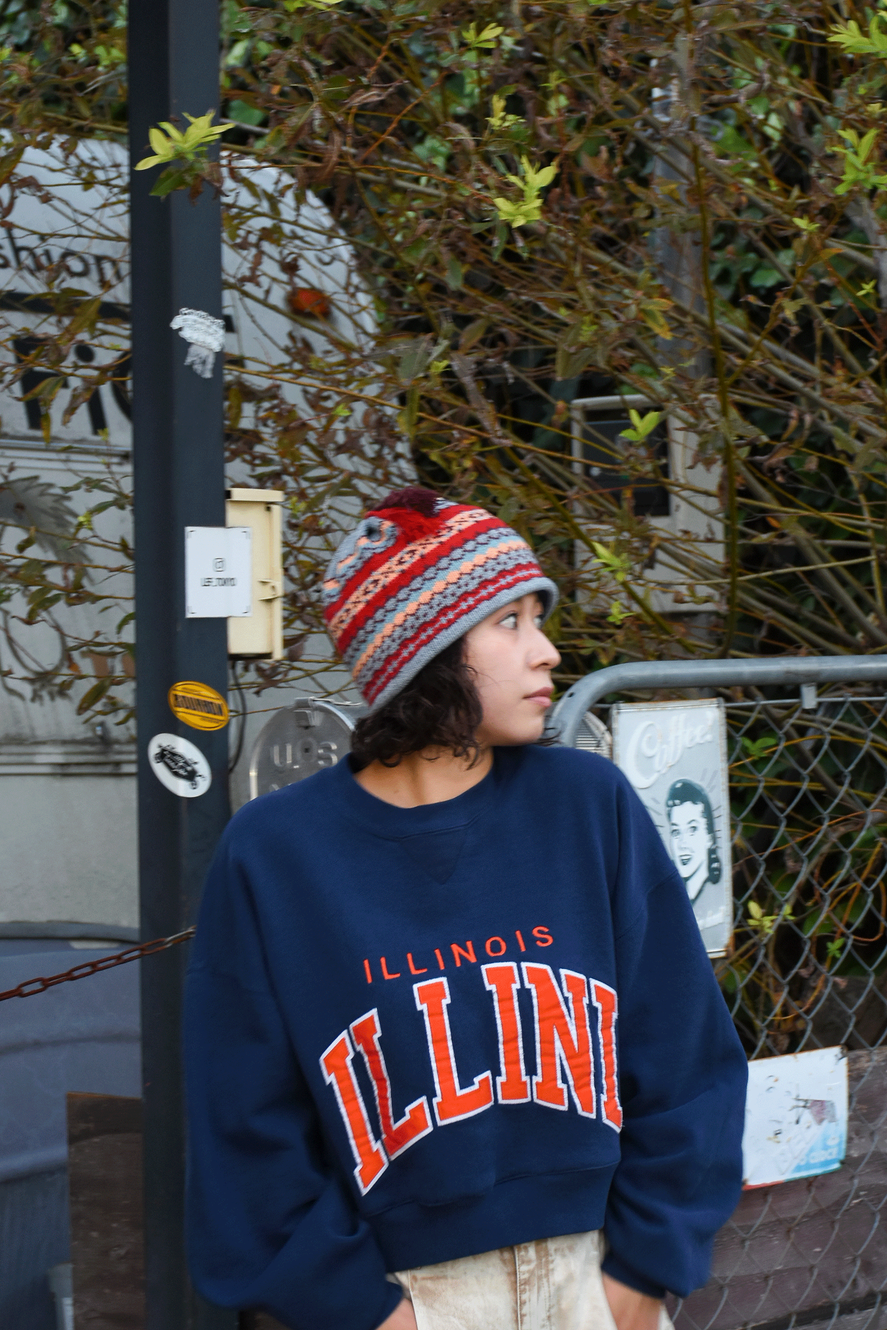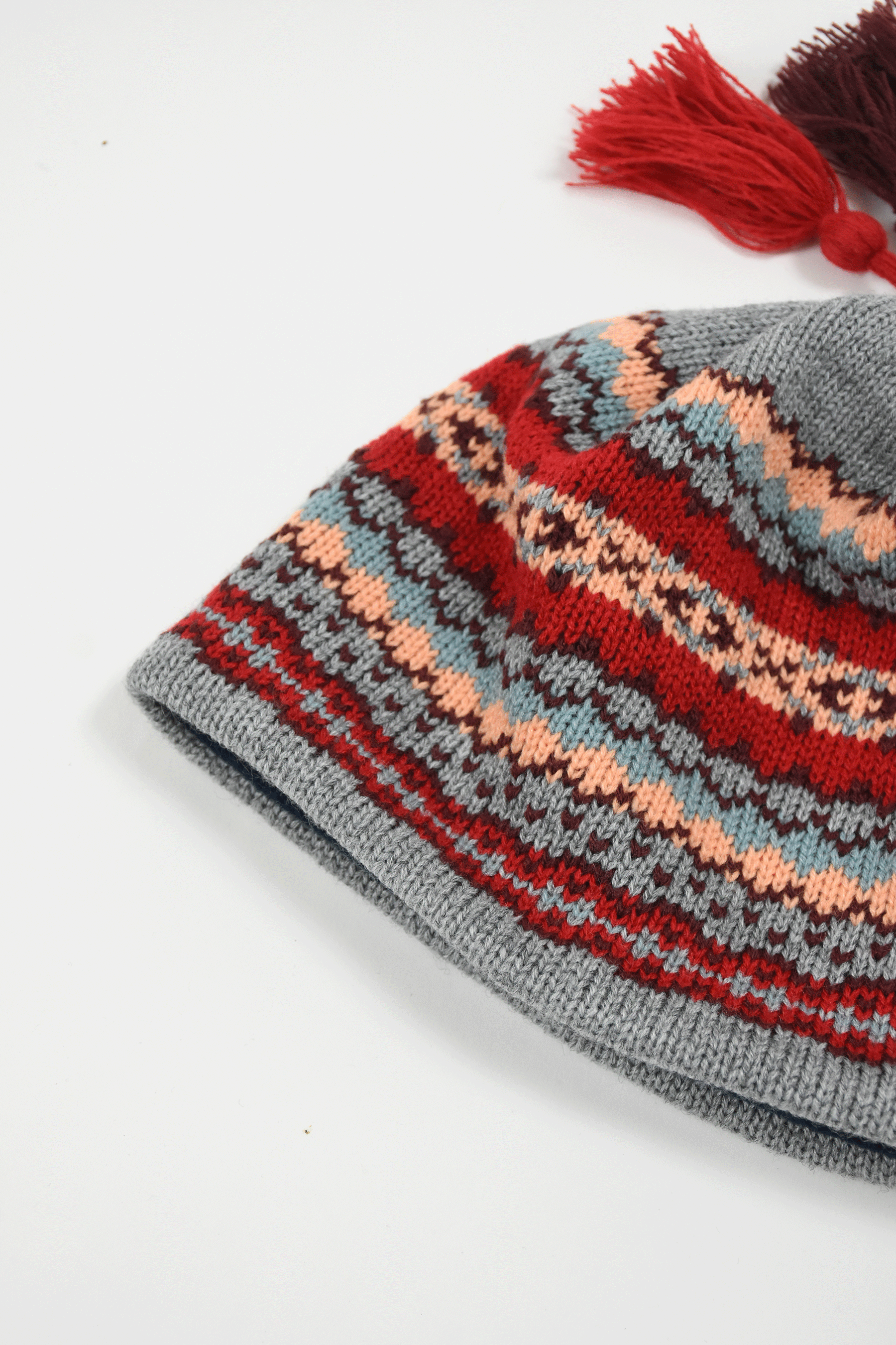 トップにはふわっとポンポン付きノルディック柄ビーニー