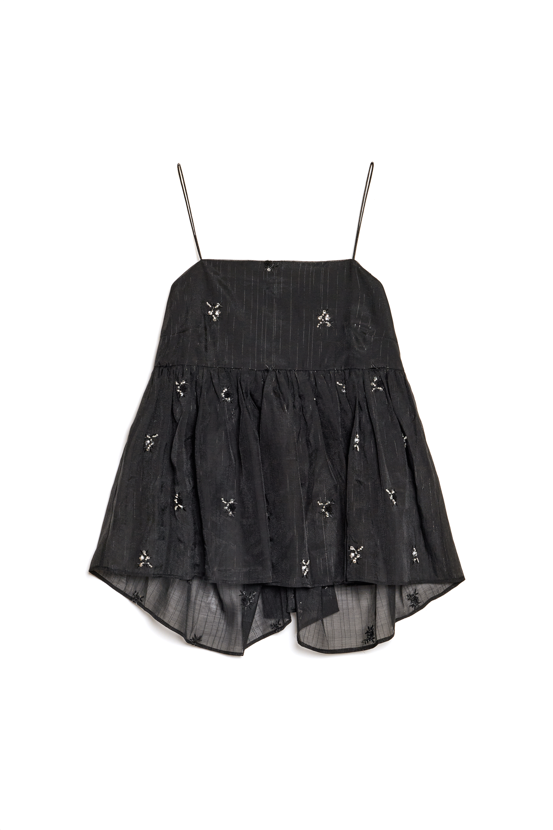ビーズで彩られたオーガンジー生地が魅力のトップス。