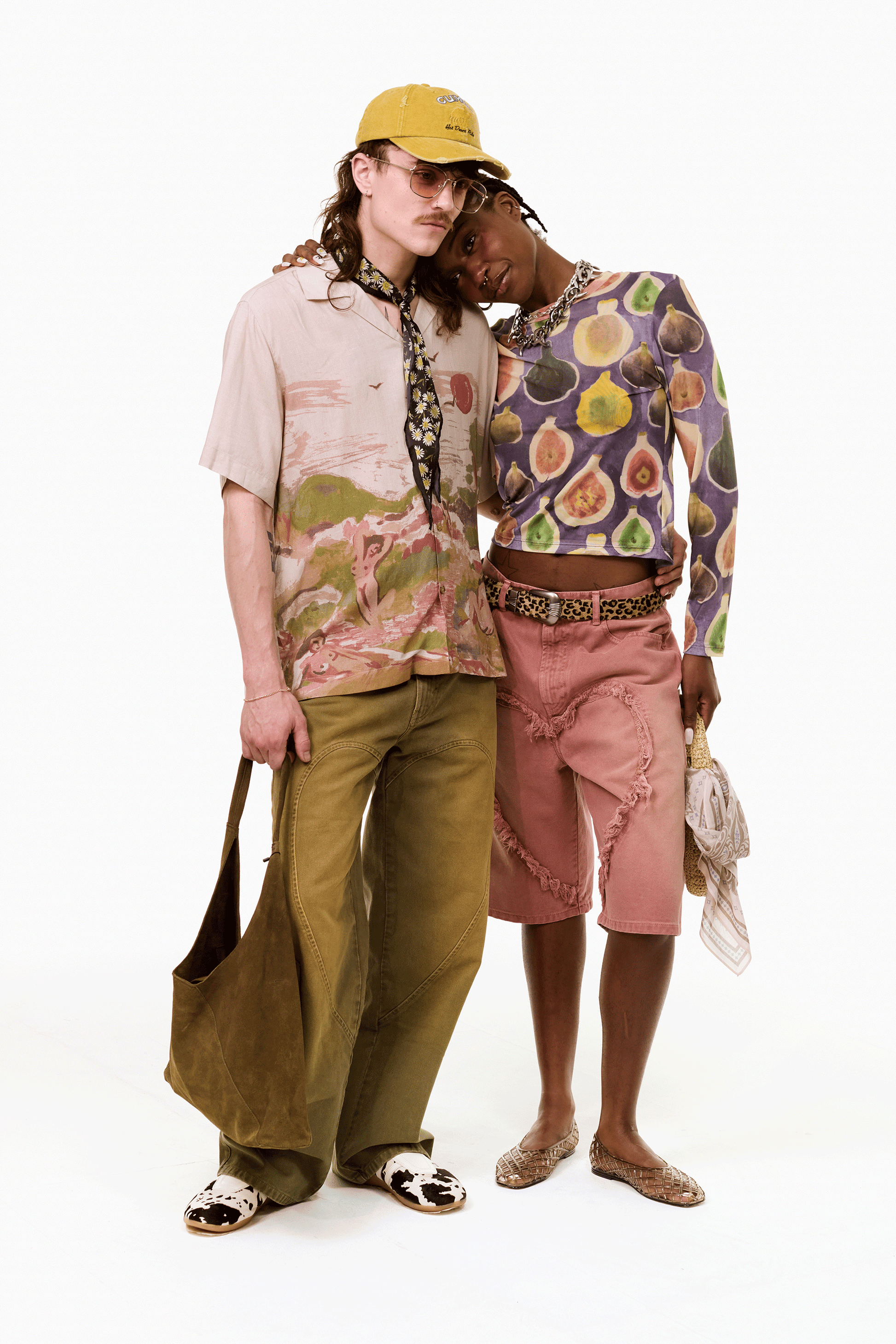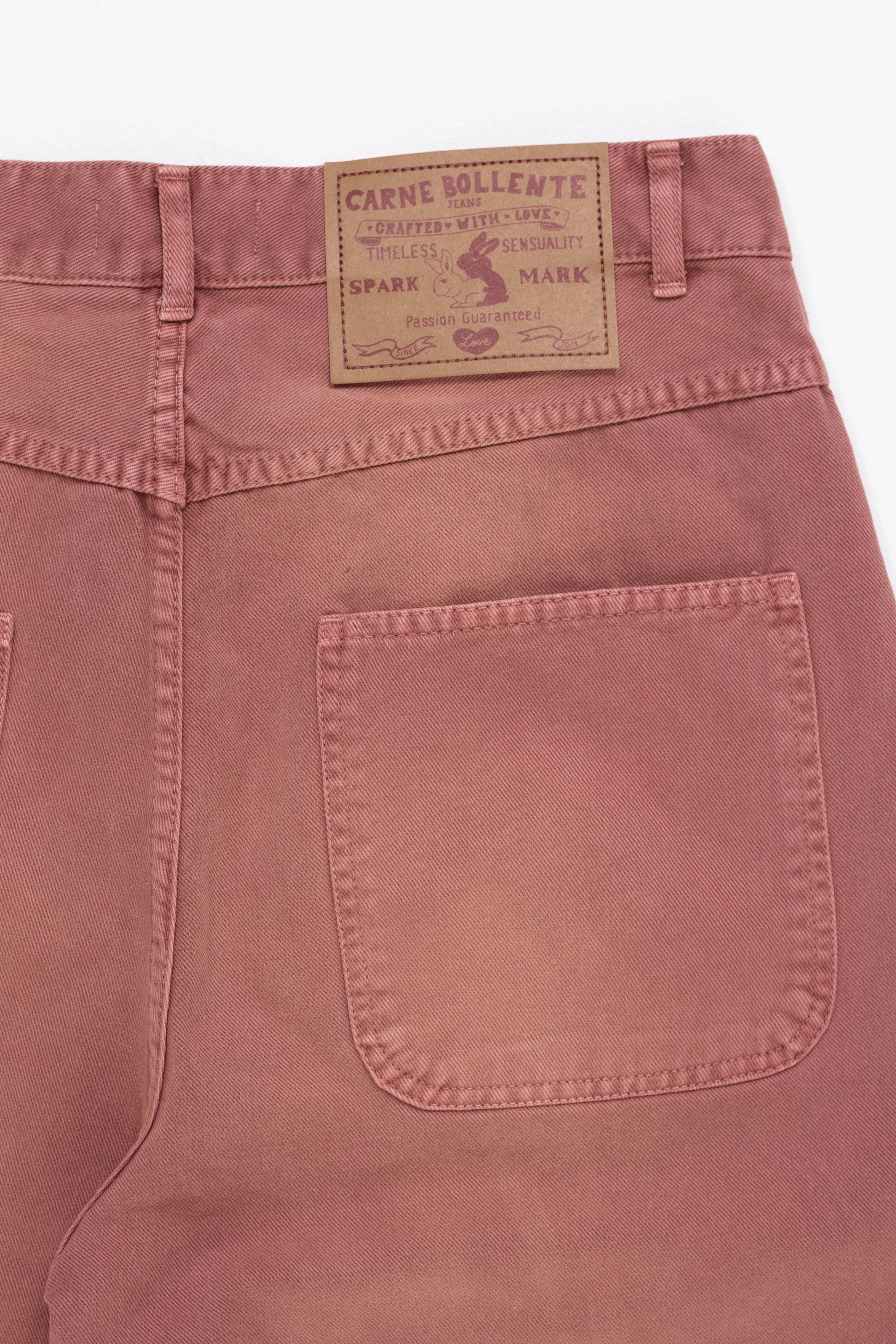 ダメージで表現されたハートをあしらったハーフパンツ。