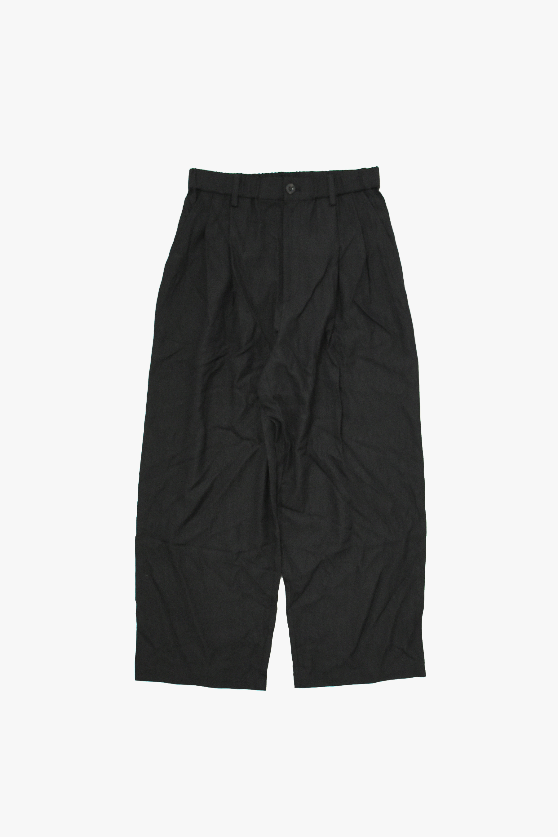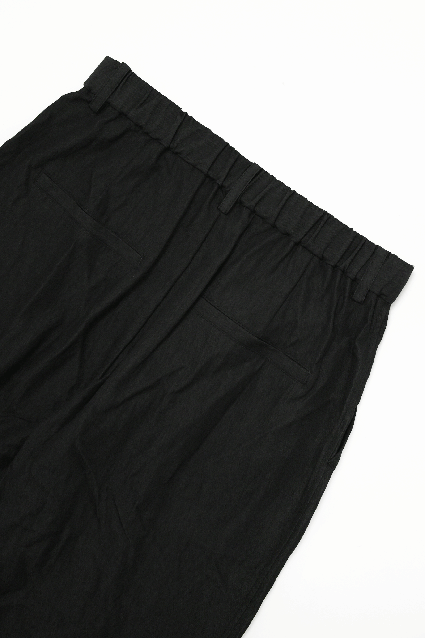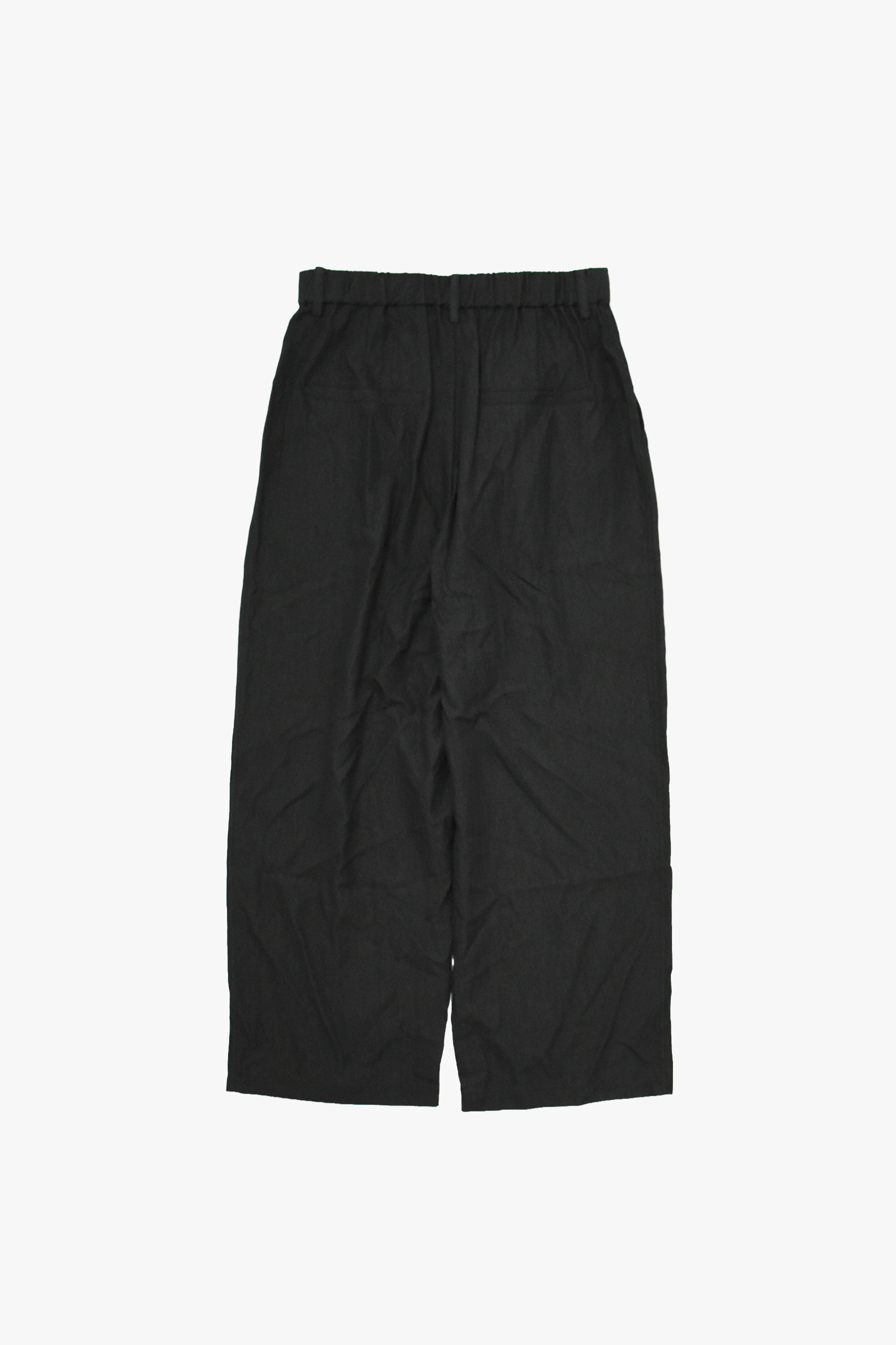 なめらかなとろみ感があって心地良いです。 ワイドシルエットなのに、タックの入ったウエストからくる 程よいドレープで全体的にすっきりとしたシルエットになっています。ウエスト後ろ部分はゴム、内側にサイズ調節可能な紐が通してあります。同生地のジャケットとセットアップで着用ももちろん、様々なトップスに合わせやすい春夏アイテムです。