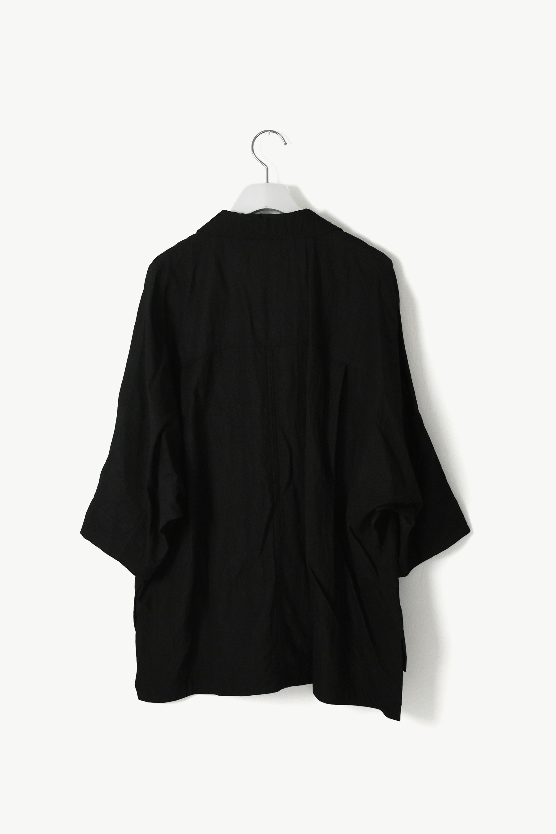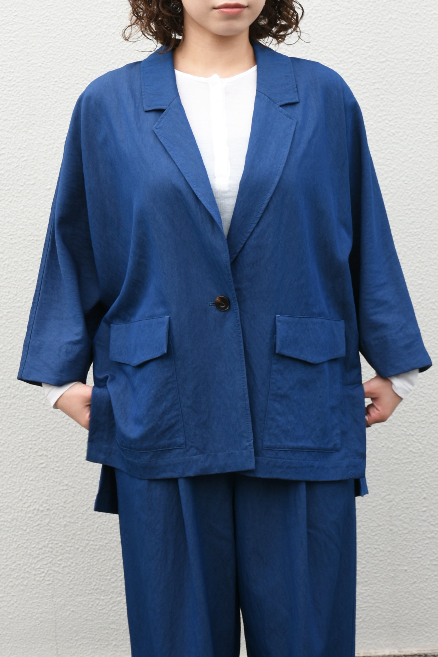 両脇の深めのベンツは動くたび軽やかな動きができ抜けがプラスされます。7部丈なので中にTeeシャツやタンクを入れてさくっと着れる羽織としてもぴったり。同生地のタックパンツとセットアップで着用できます。様々なボトムに合わせやすい春夏アイテムです。
