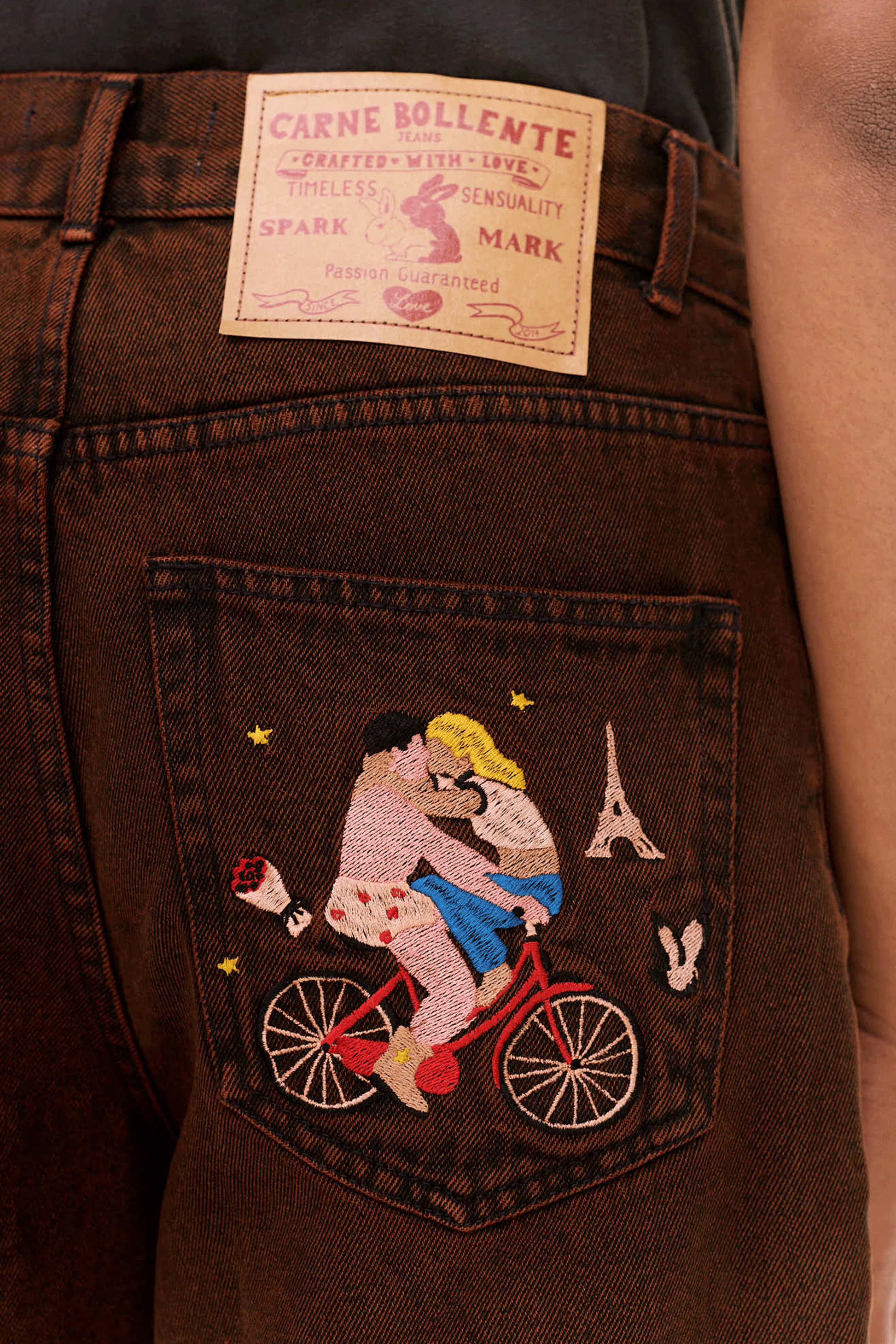 カルネボレンテらしい刺繍デザインが後姿に組み合わせられ、トップスはシンプルでもビンテージぽさも感じる雰囲気のでるアイテムです。