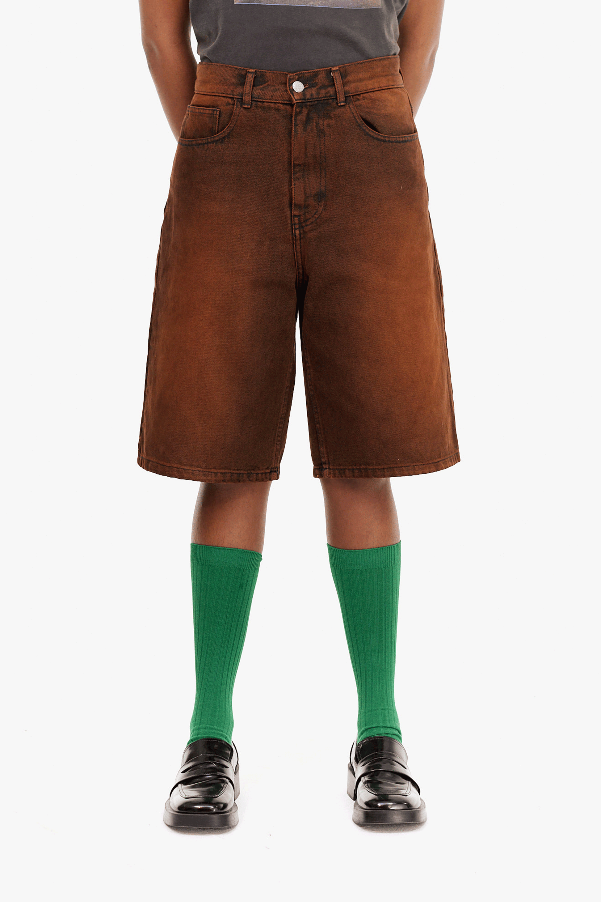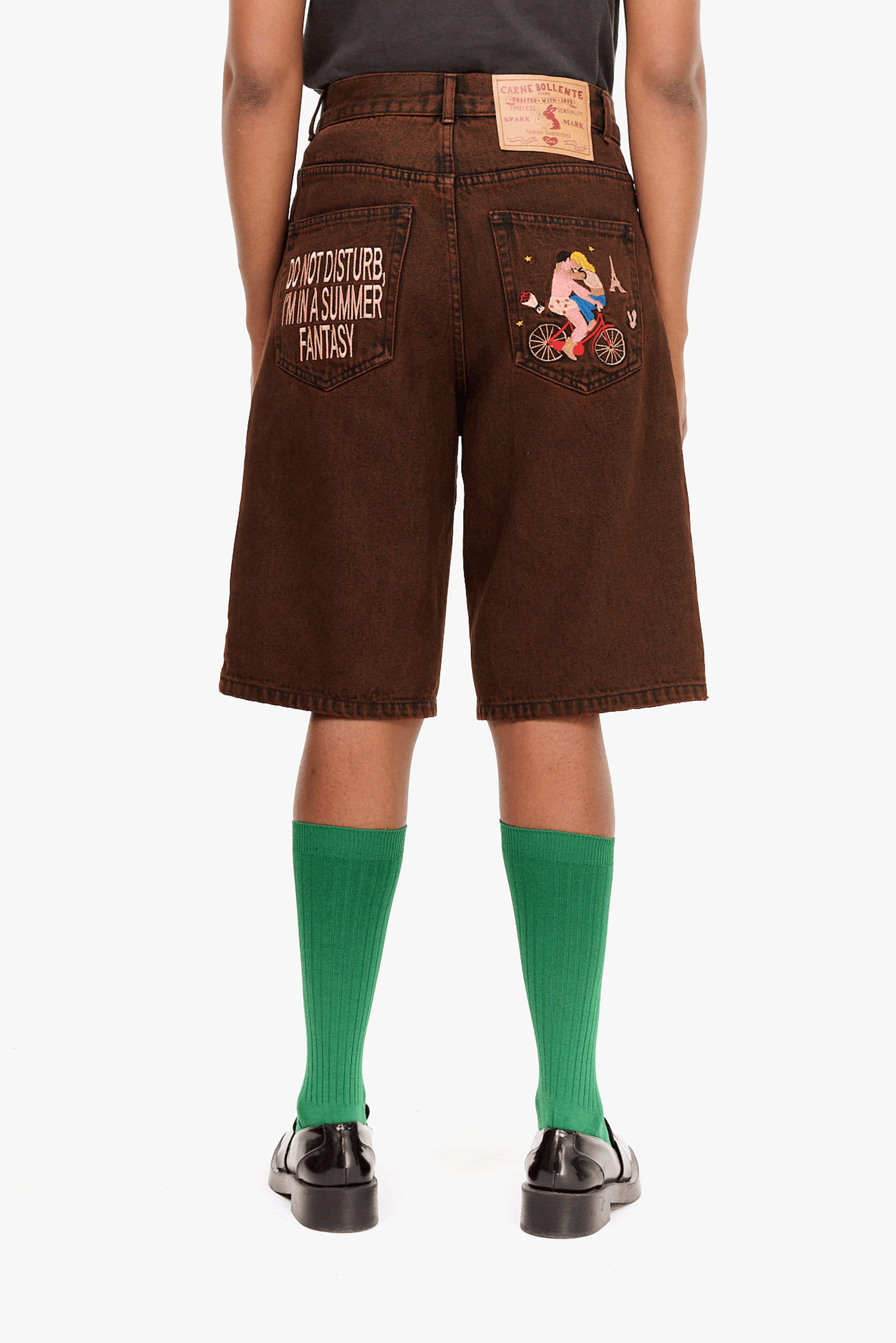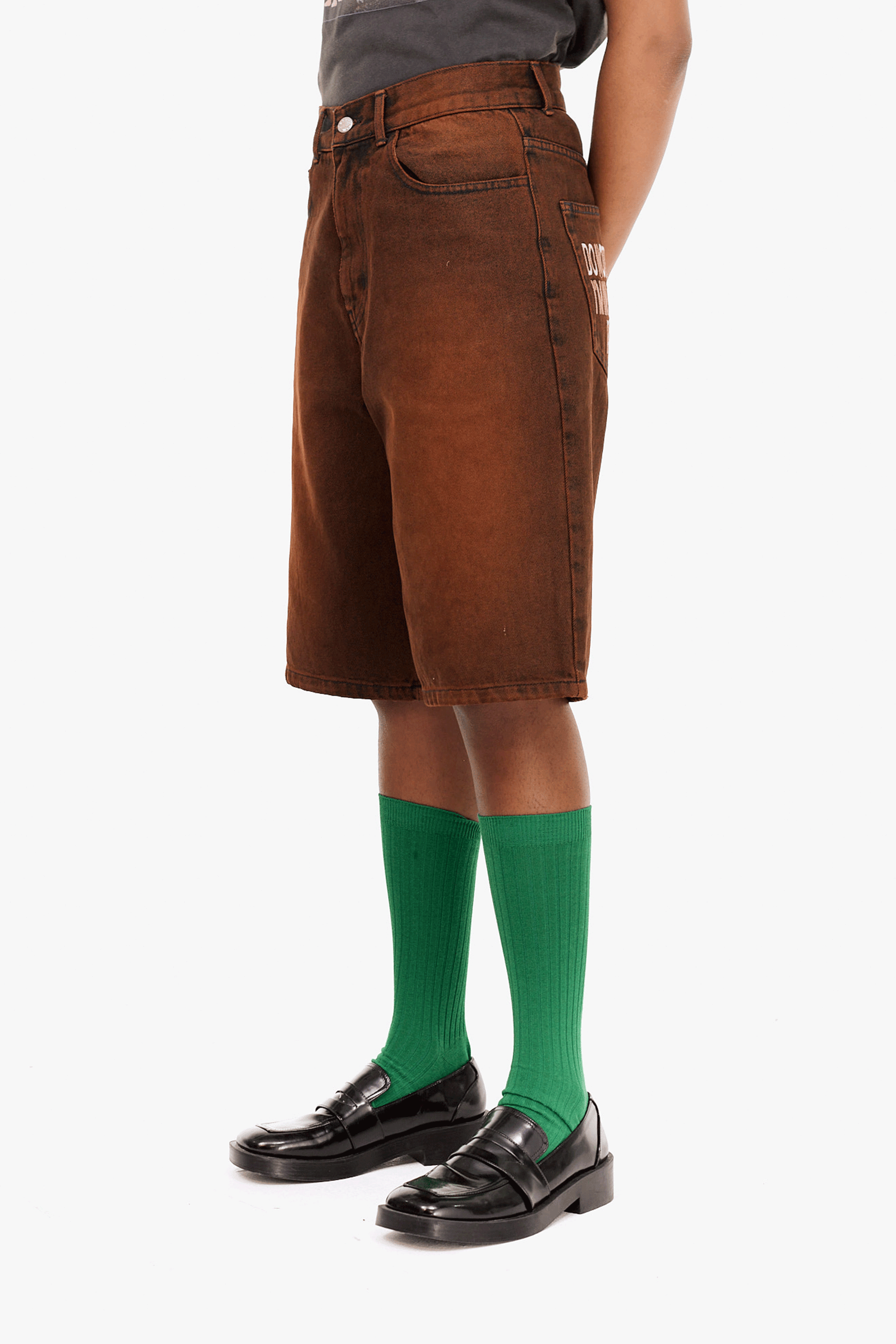 ウォッシュのかかった絶妙な色合いとポケットの刺繍がポイントのハーフパンツ。